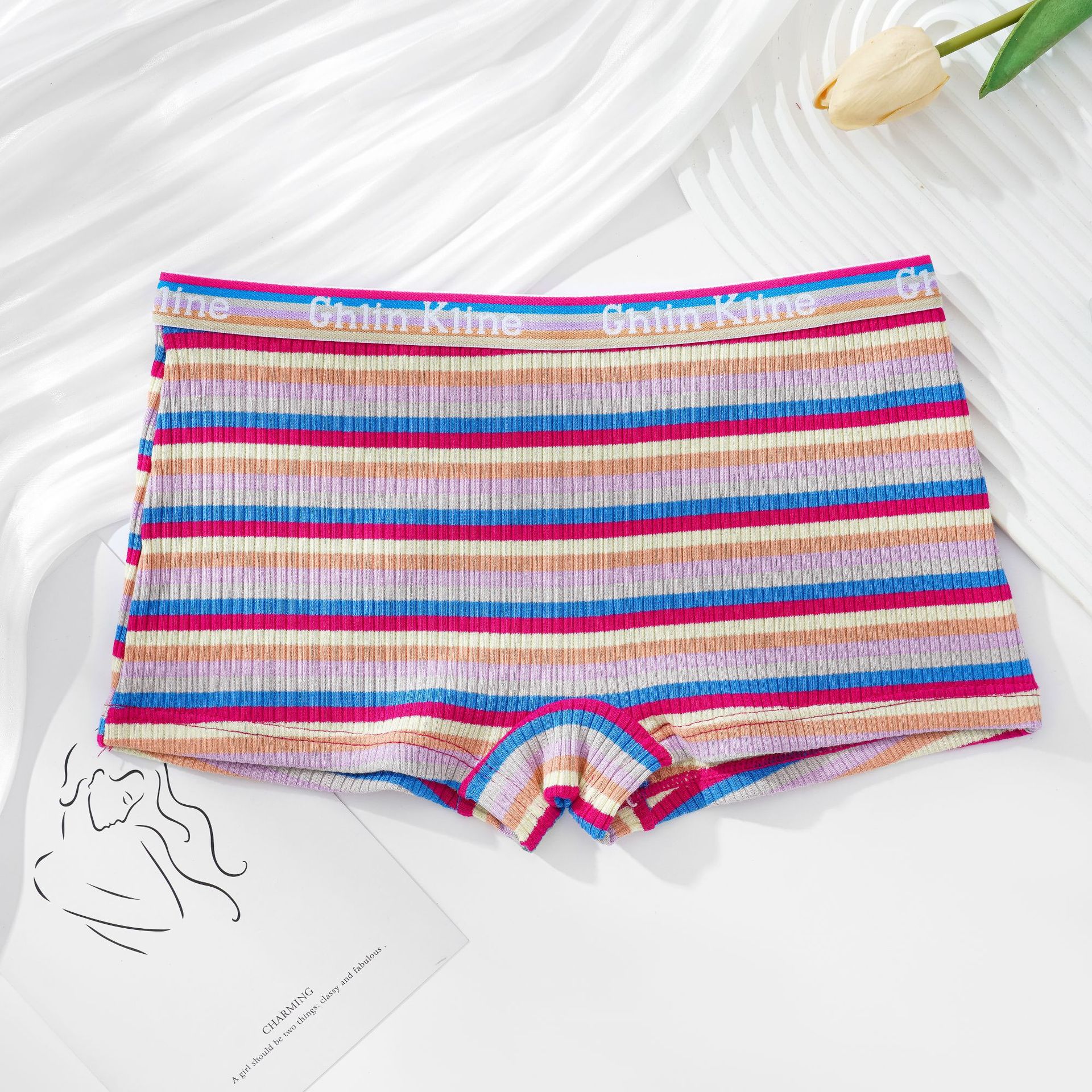 빈티지 스트라이프 복서 팬티 여성용 미드 웨이스트 복서 팬티 패션 유럽과 미국 플러스 사이즈 순면 팬티스토어 가기
