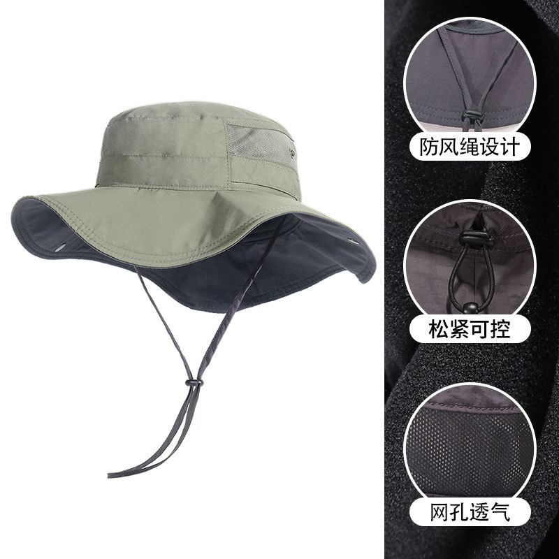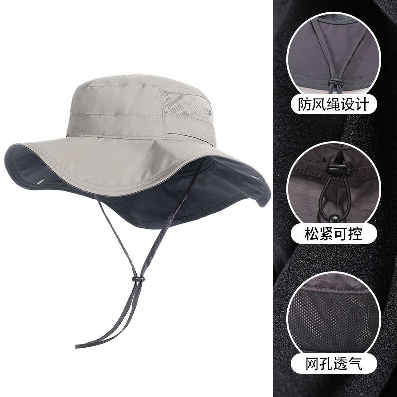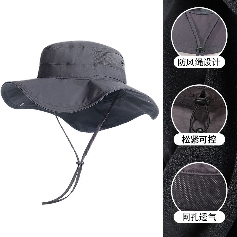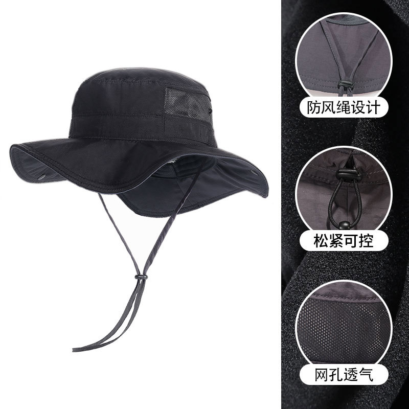 봄과 여름 크로스 보더 등산 모자 속건 통기성 자외선 차단 대형 이브 차양 어부 모자 남성용 접이식 자외선 차단제 모자