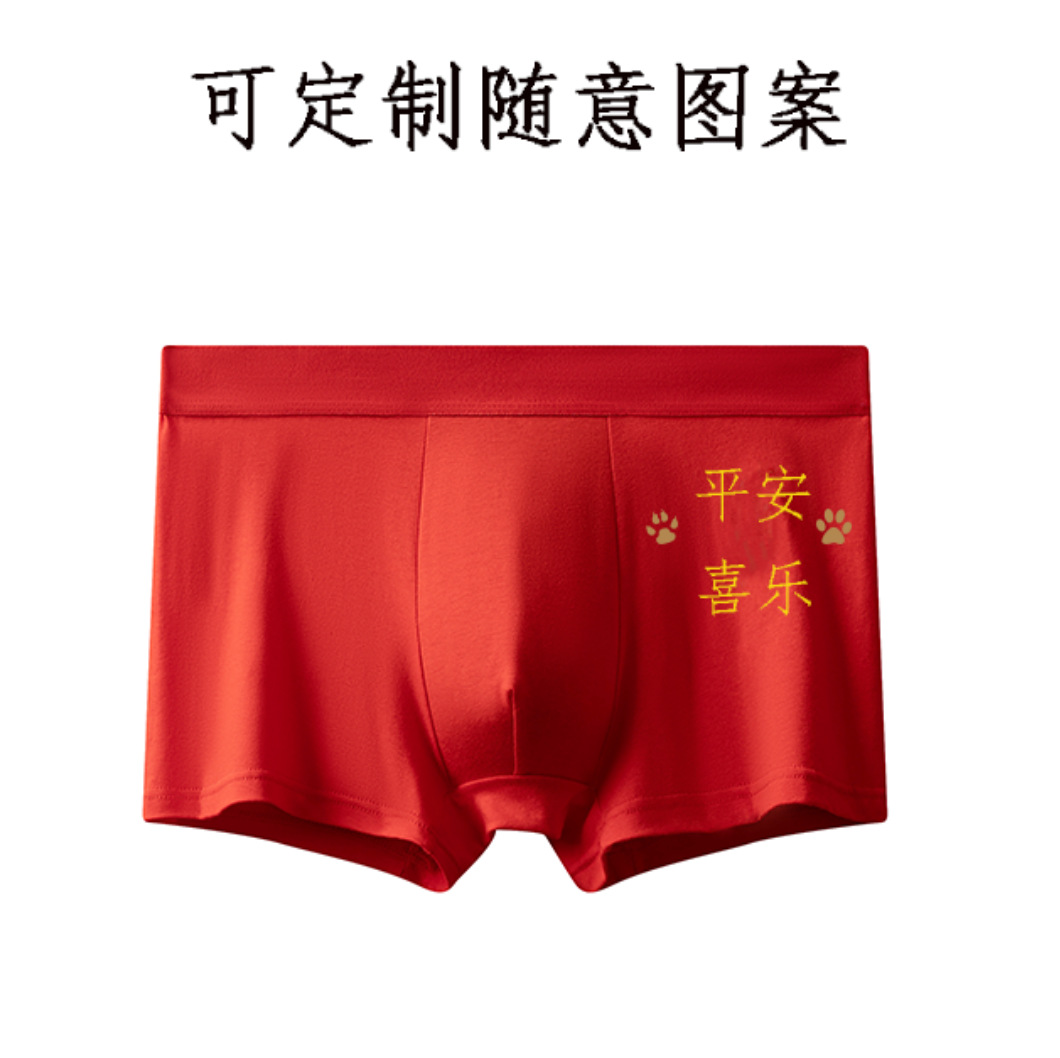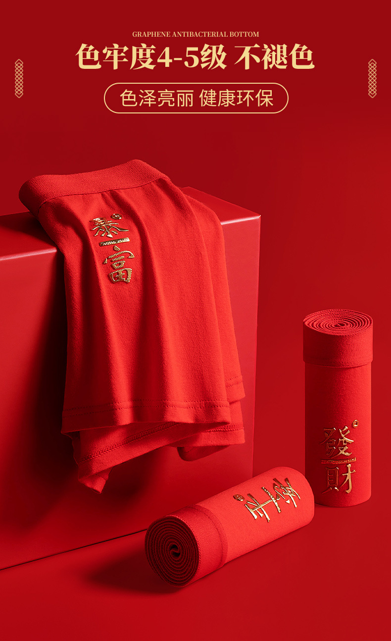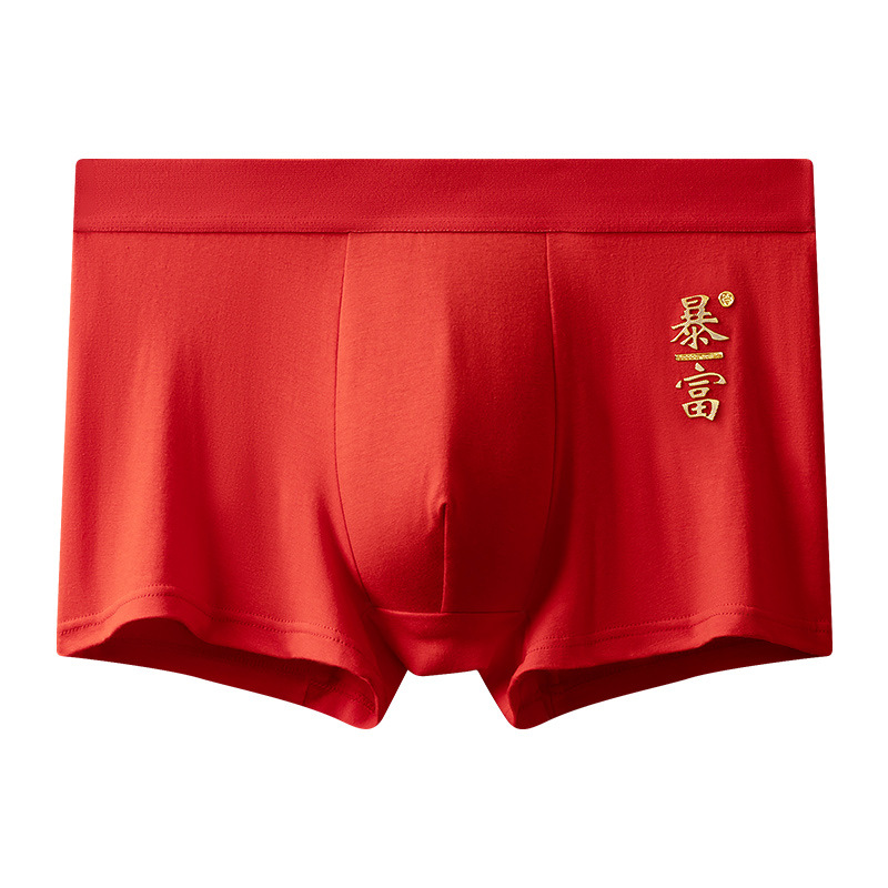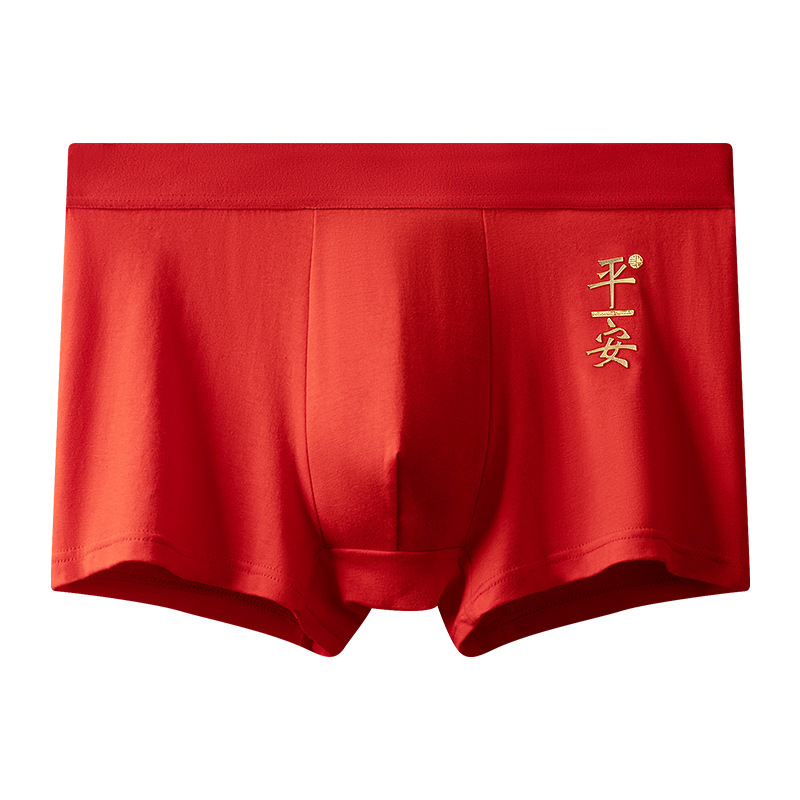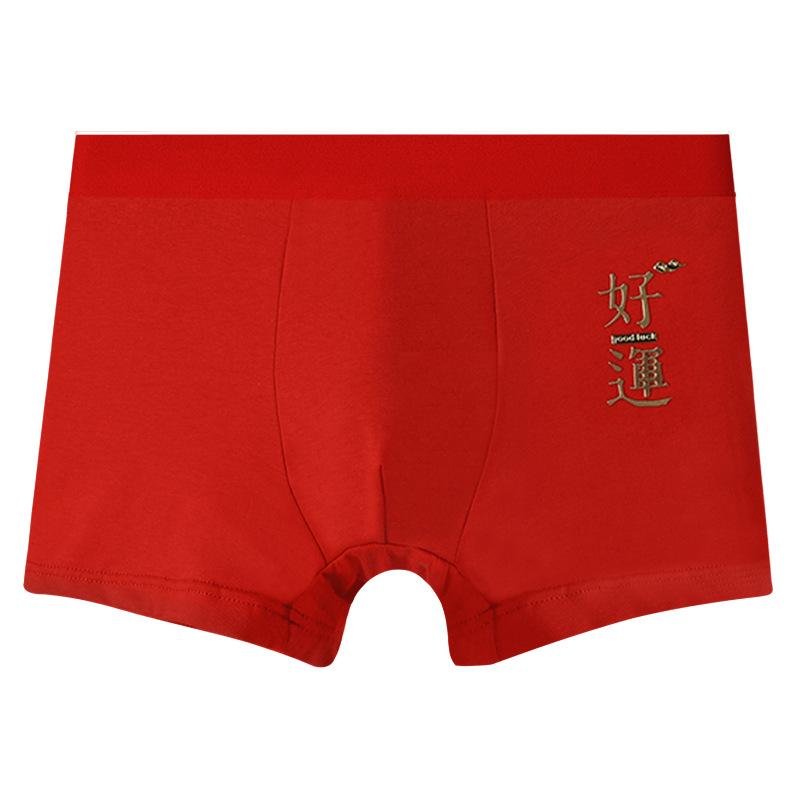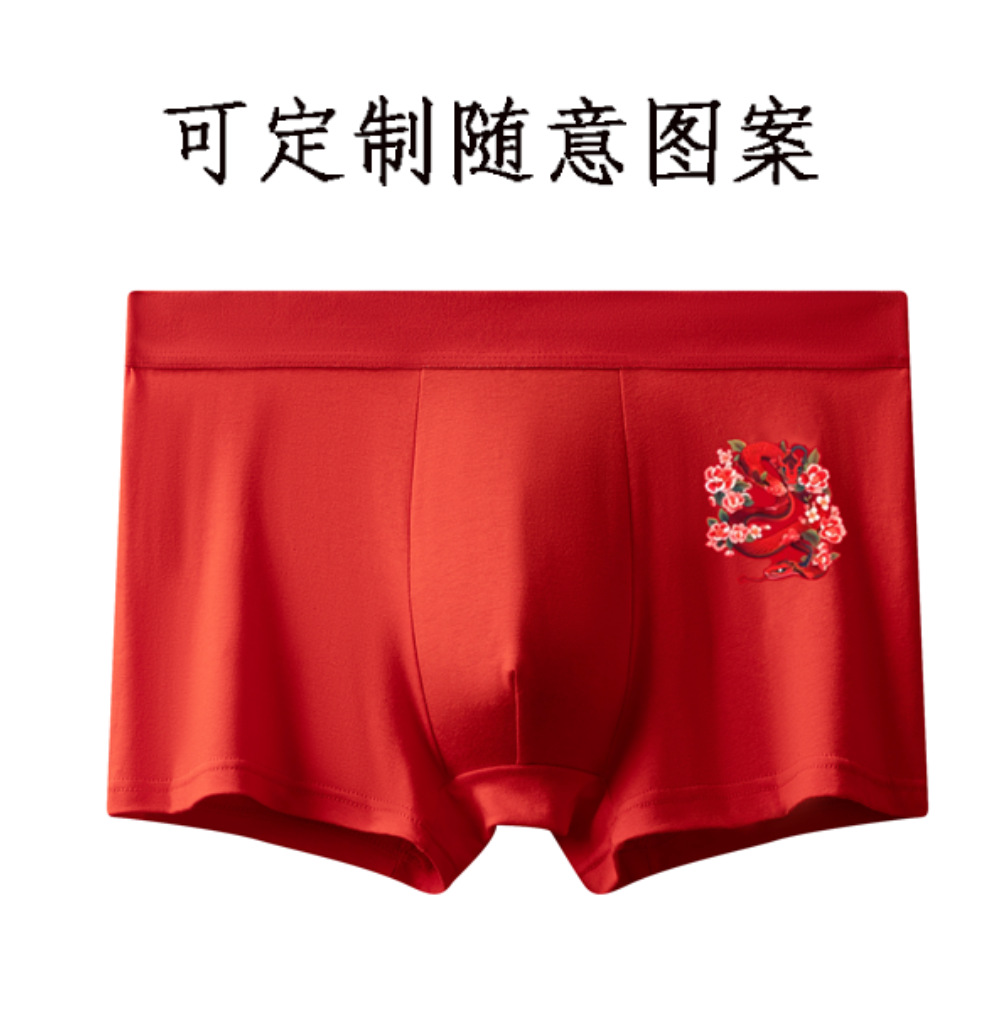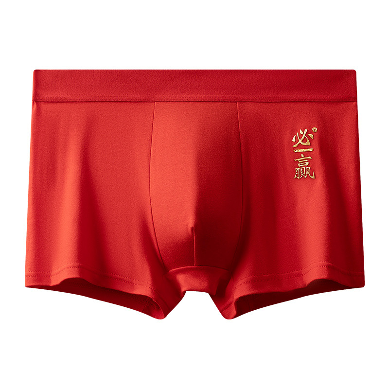 2024년 신상 남성용 순면 속옷, 청년 및 중년층을 위한 통기성 및 항균 기능이 있는 사각팬티, 붉은 색으로 행운을 빕니다.