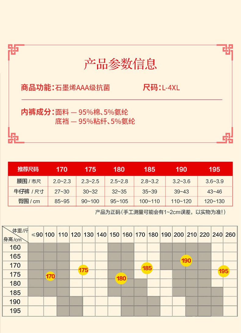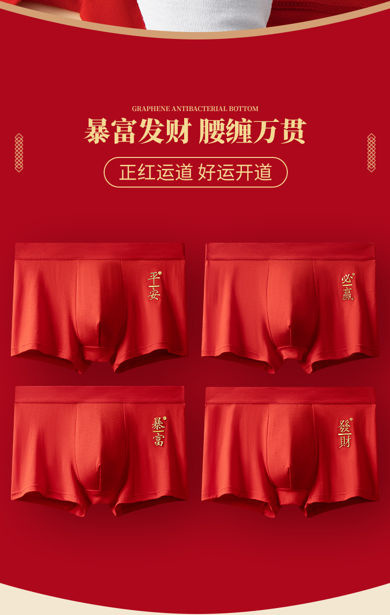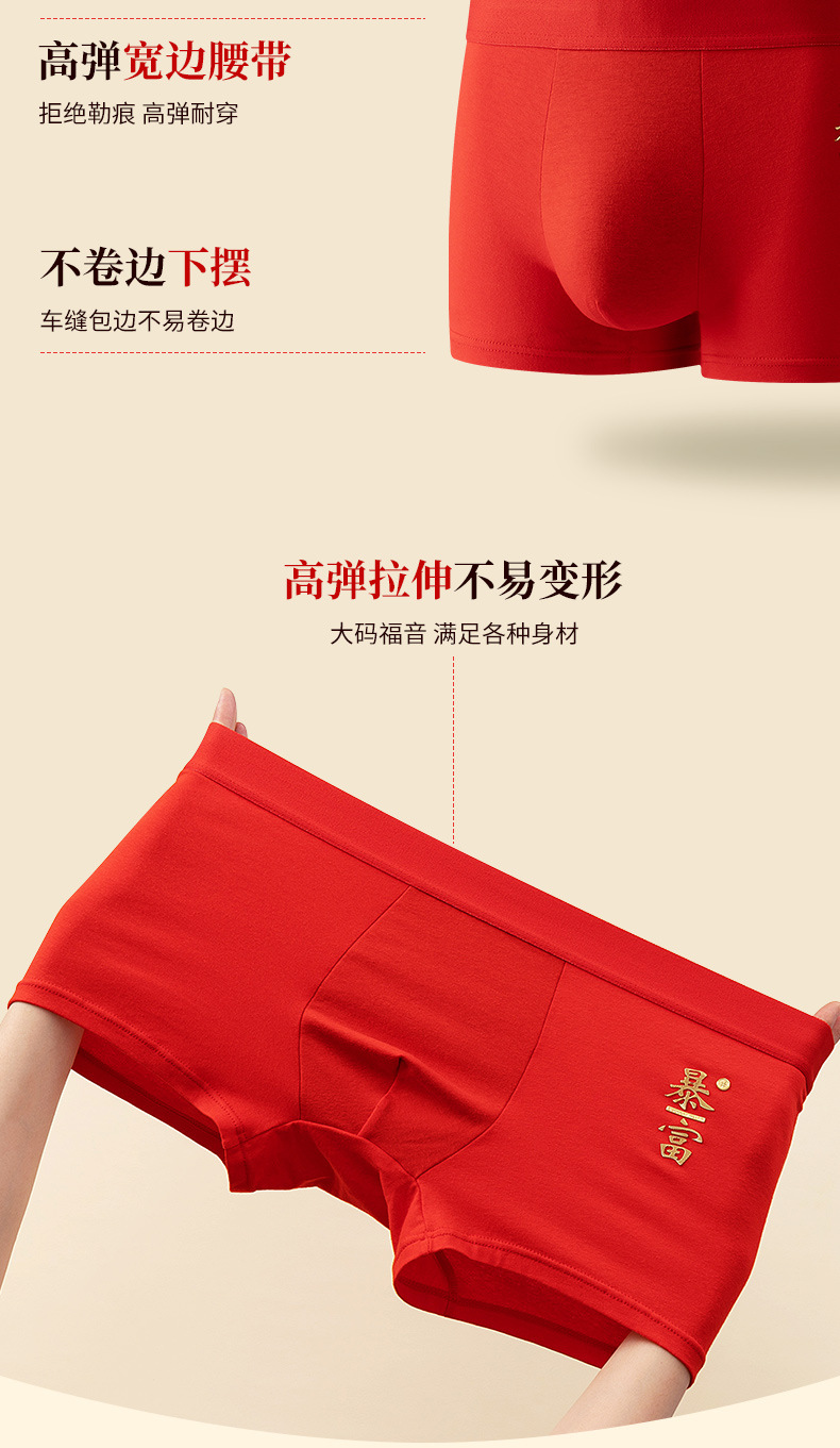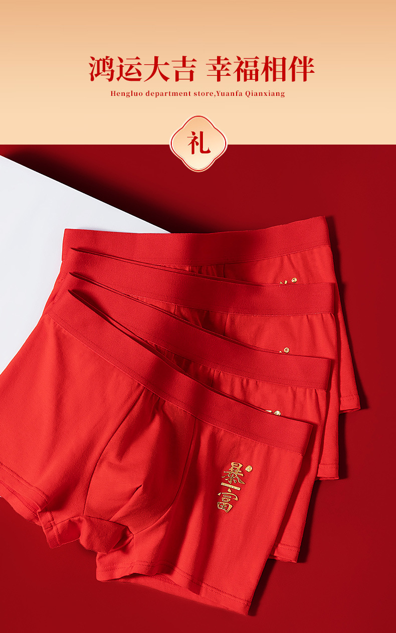 2024년 신상 남성용 순면 속옷, 청년 및 중년층을 위한 통기성 및 항균 기능이 있는 사각팬티, 붉은 색으로 행운을 빕니다.스토어 가기