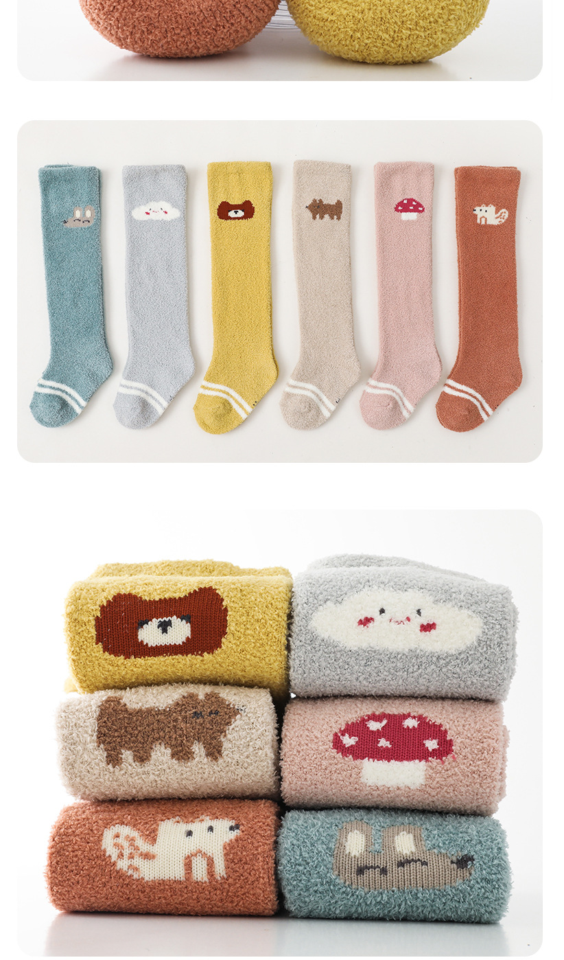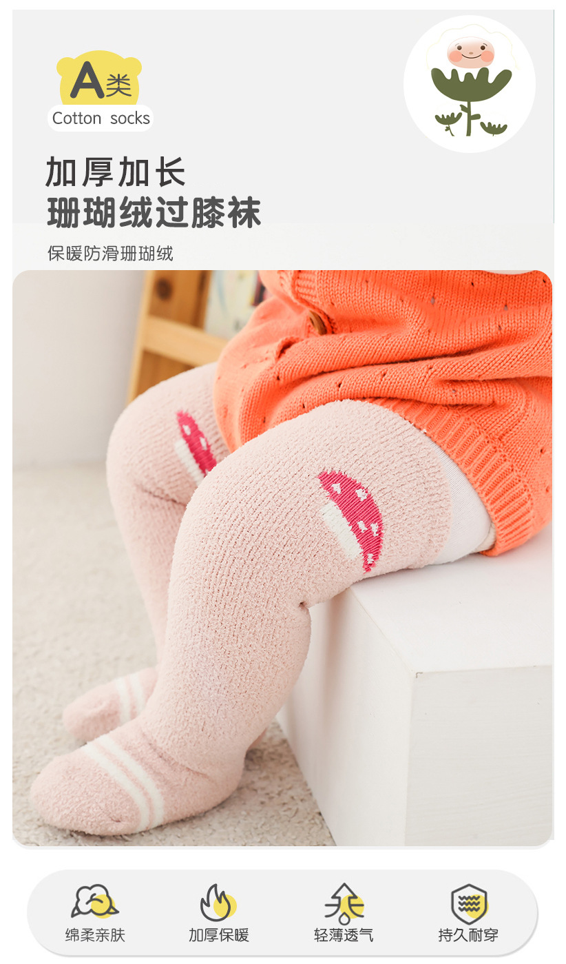 가을과 겨울 두꺼운 산호 양털 만화 아기 양말 신생아 아기 허벅지 양말 무릎 높이 아기 스타킹스토어 가기