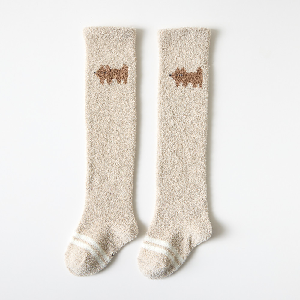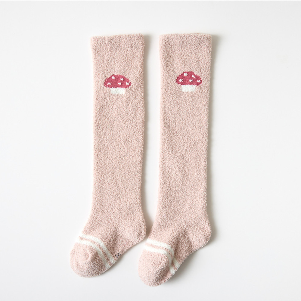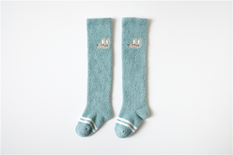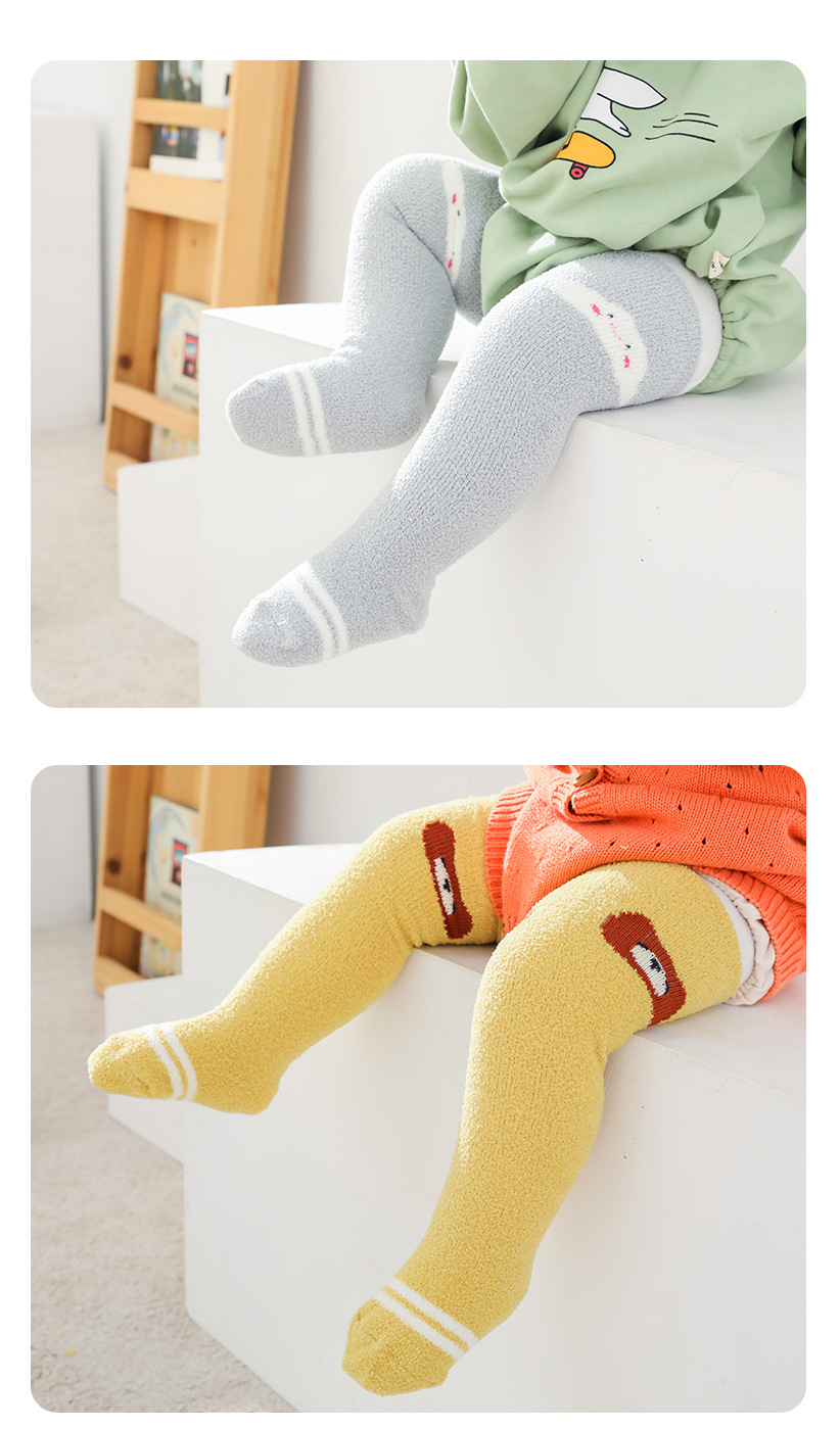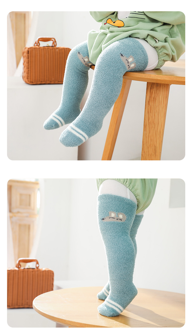가을과 겨울 두꺼운 산호 양털 만화 아기 양말 신생아 아기 허벅지 양말 무릎 높이 아기 스타킹