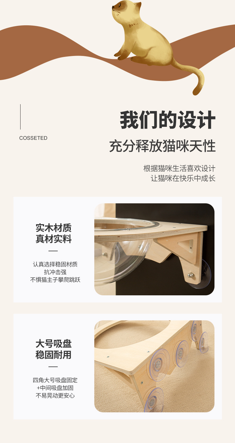 단단한 나무 고양이 해먹 고양이 둥지 애완 동물 창 유리 고양이 교수형 침대 교수형 빨판 고양이 공간 캡슐 보호