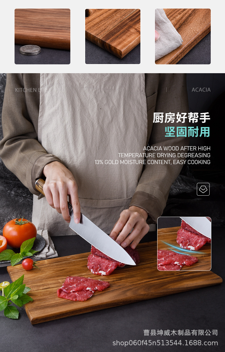 공장 직영 원목 사각 외국 무역 서양식 도마 소엽 아카시아 우드 컷 스테이크 요리 도마스토어 가기