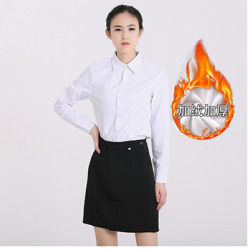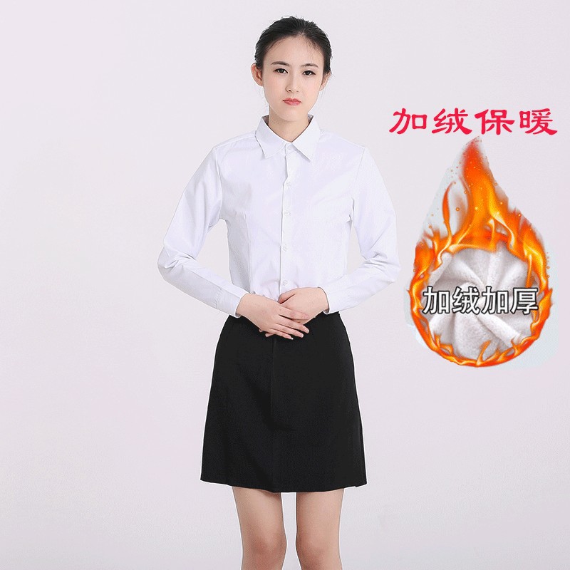 기모 따뜻한 가을과 겨울 새로운 흰색 셔츠 여성용 긴팔 비즈니스웨어 한국 스타일 슬림핏 플러스 사이즈 작업복 크록 탑