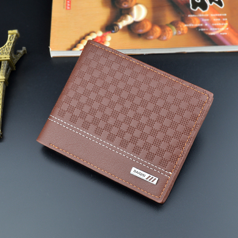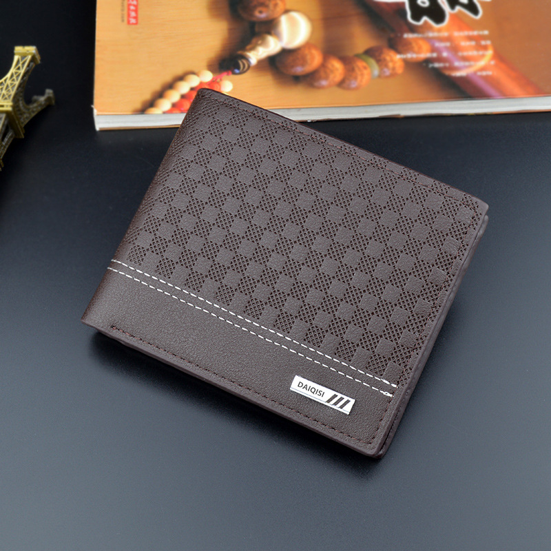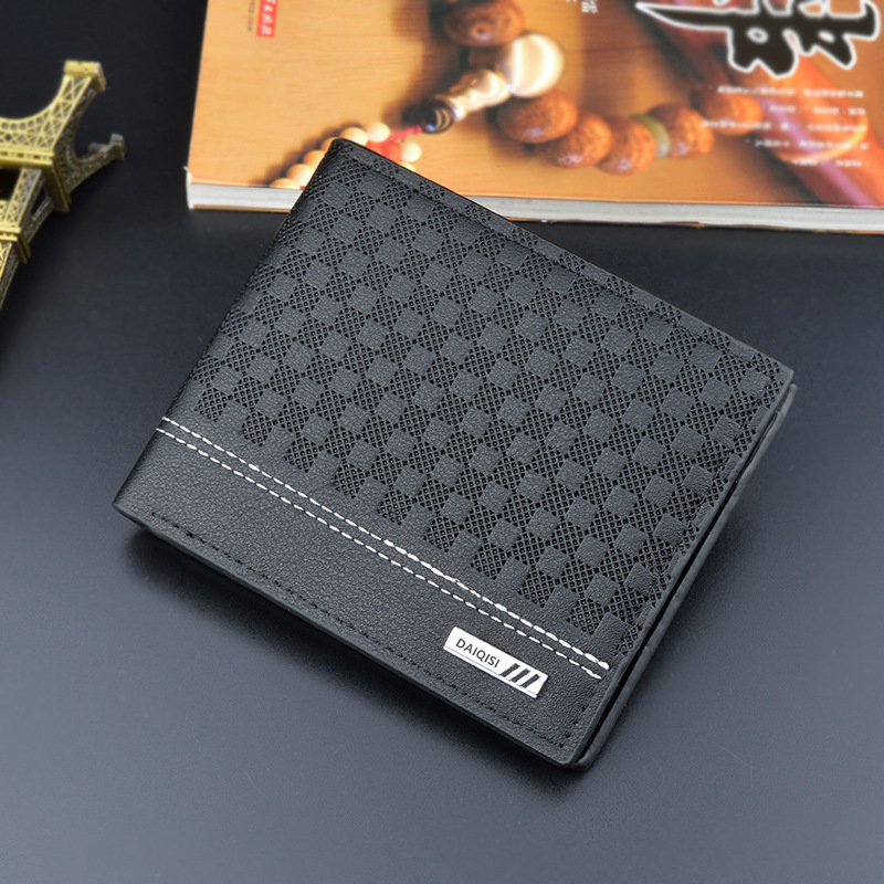 새로운 남자 지갑 남자의 짧은 유행 간단한 격자 무늬 얇은 지갑 남자의 청소년 대용량 수평 소프트 지갑