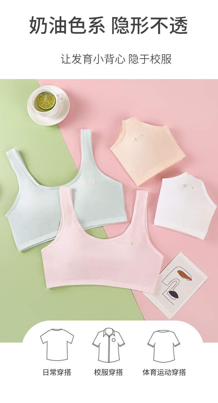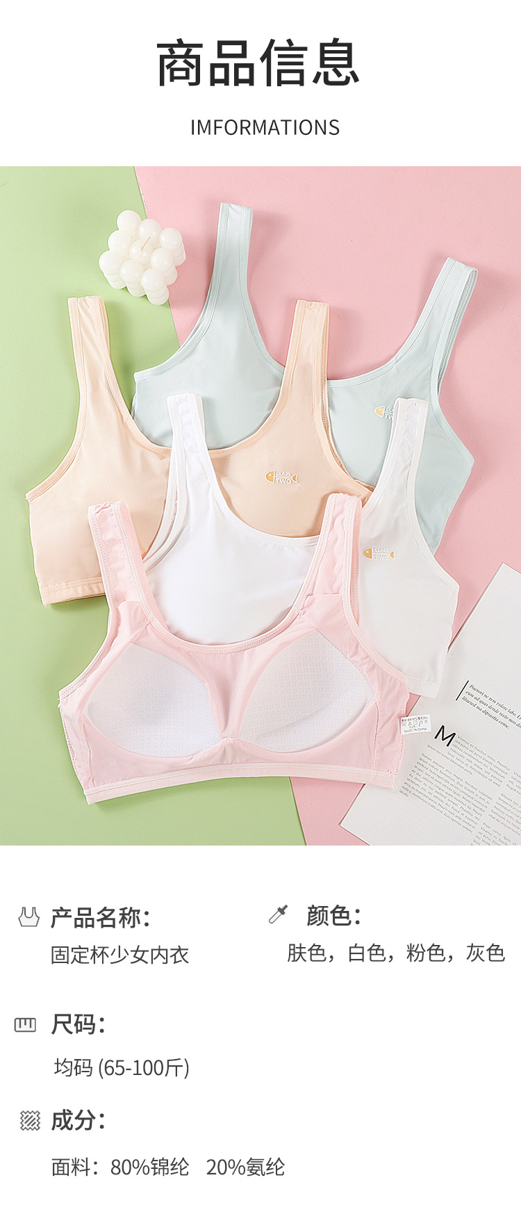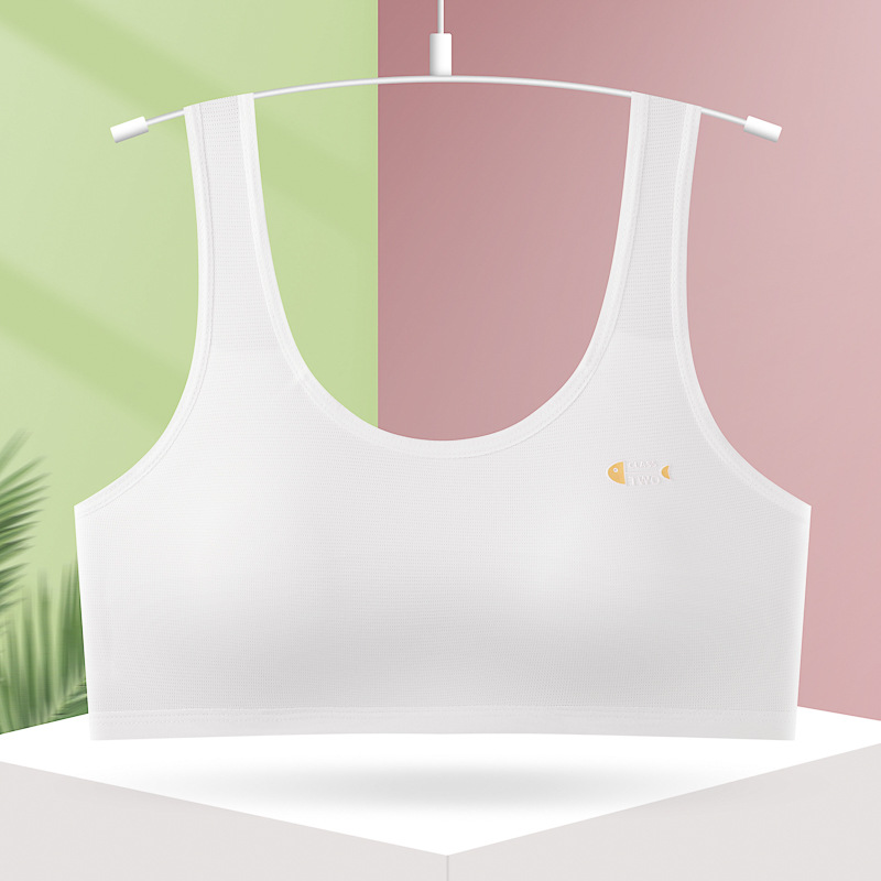 사춘기 소녀 발달 속옷 고정 컵 아이스 실크 통기성 메쉬 중학교 학생 작은 조끼 소녀 끈이없는스토어 가기