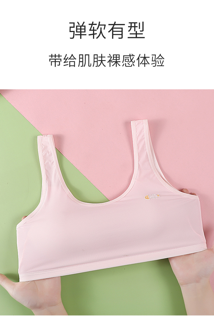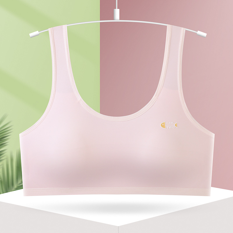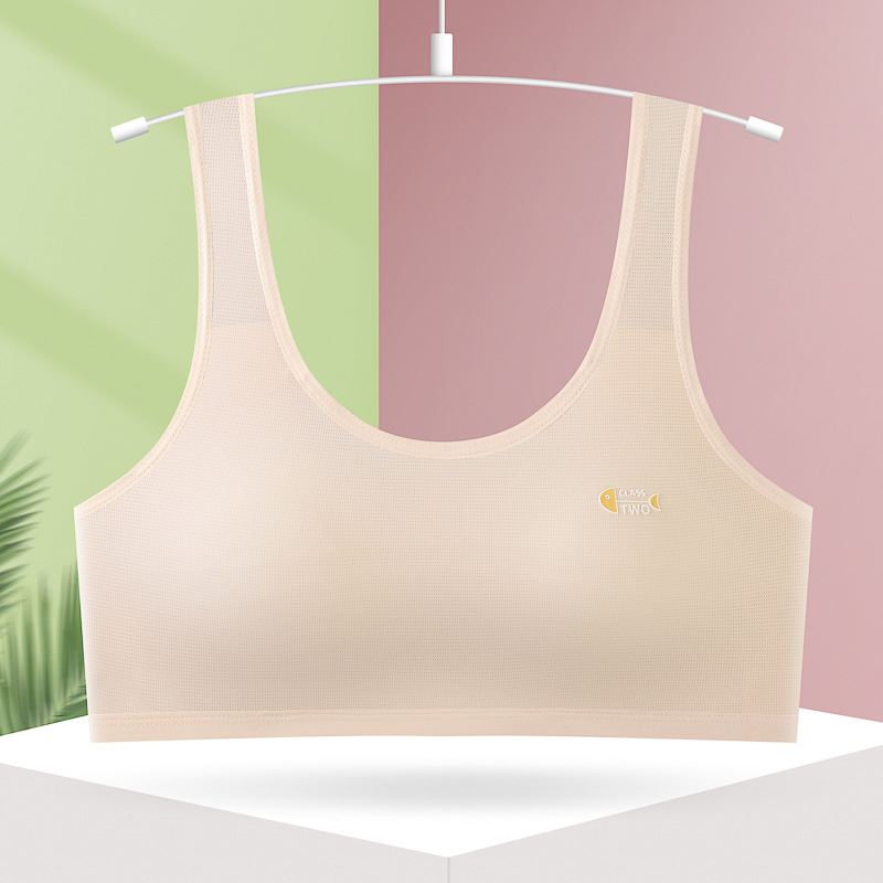 사춘기 소녀 발달 속옷 고정 컵 아이스 실크 통기성 메쉬 중학교 학생 작은 조끼 소녀 끈이없는