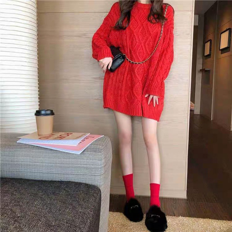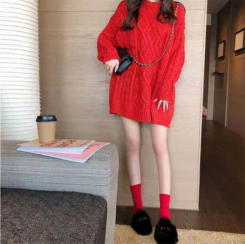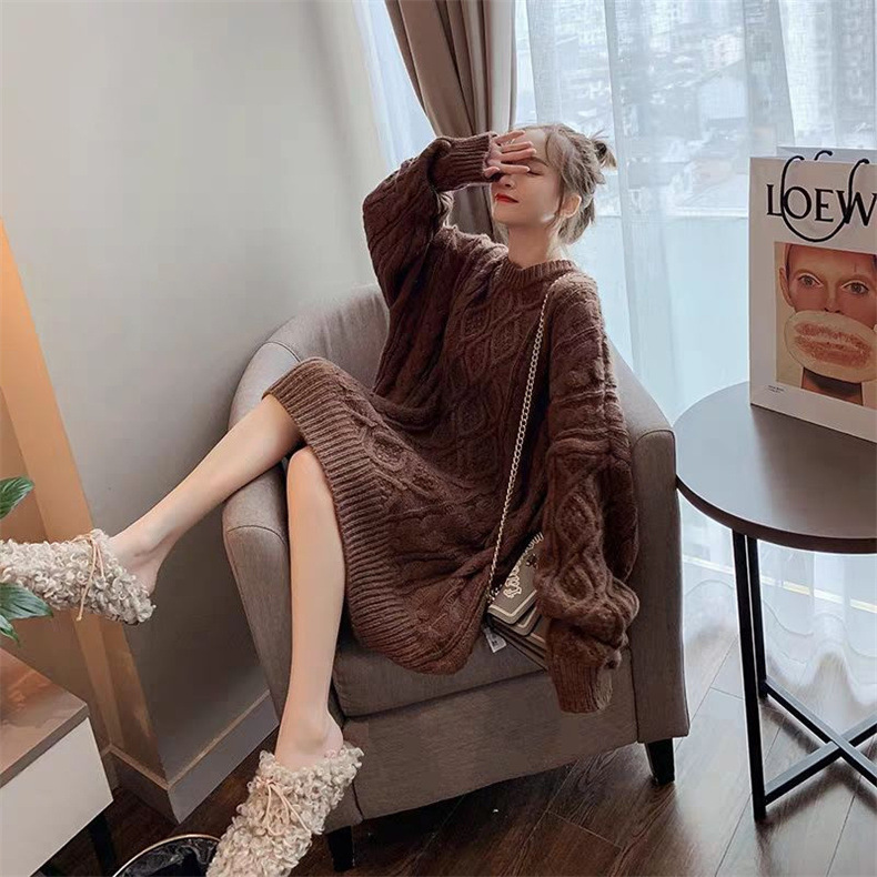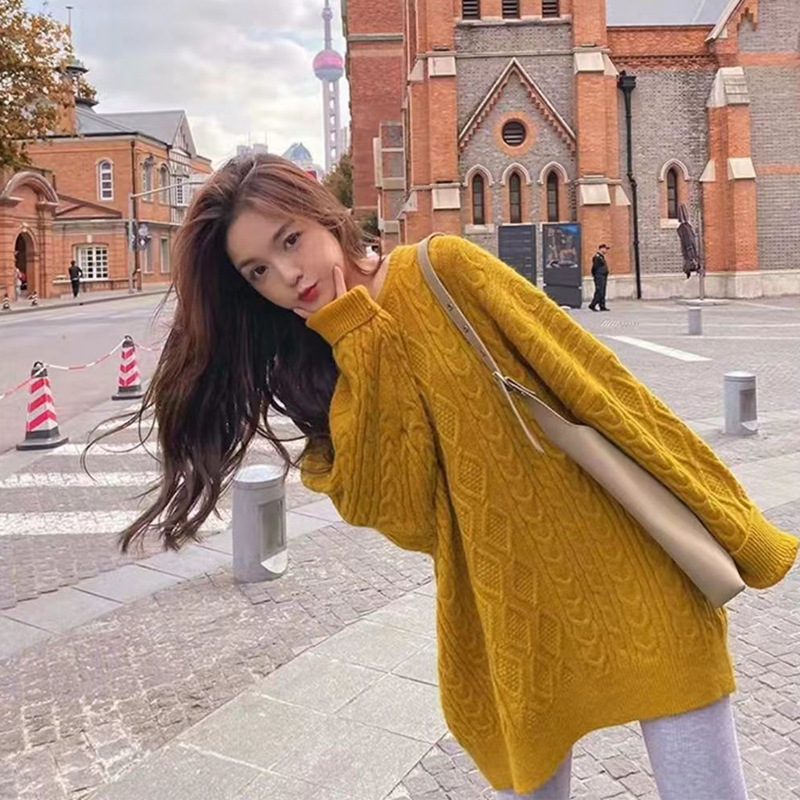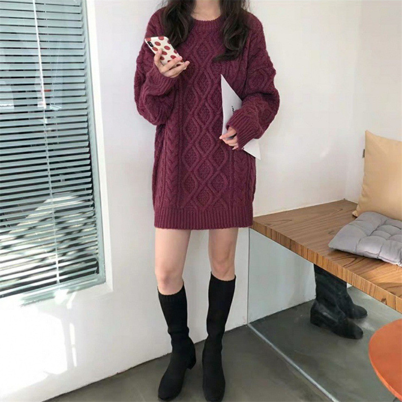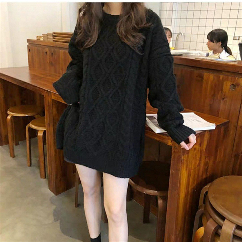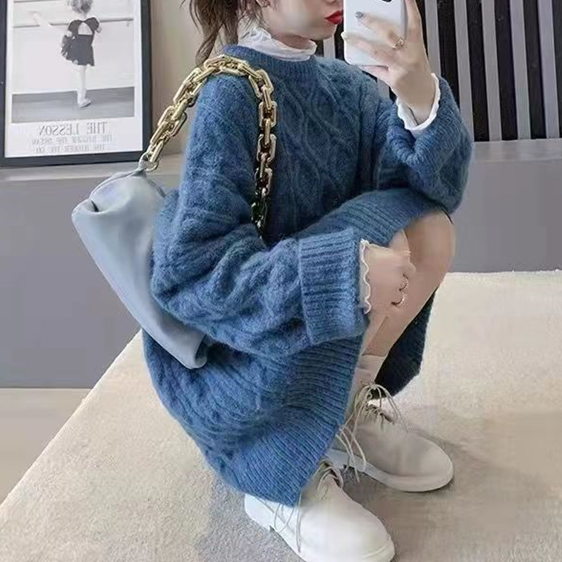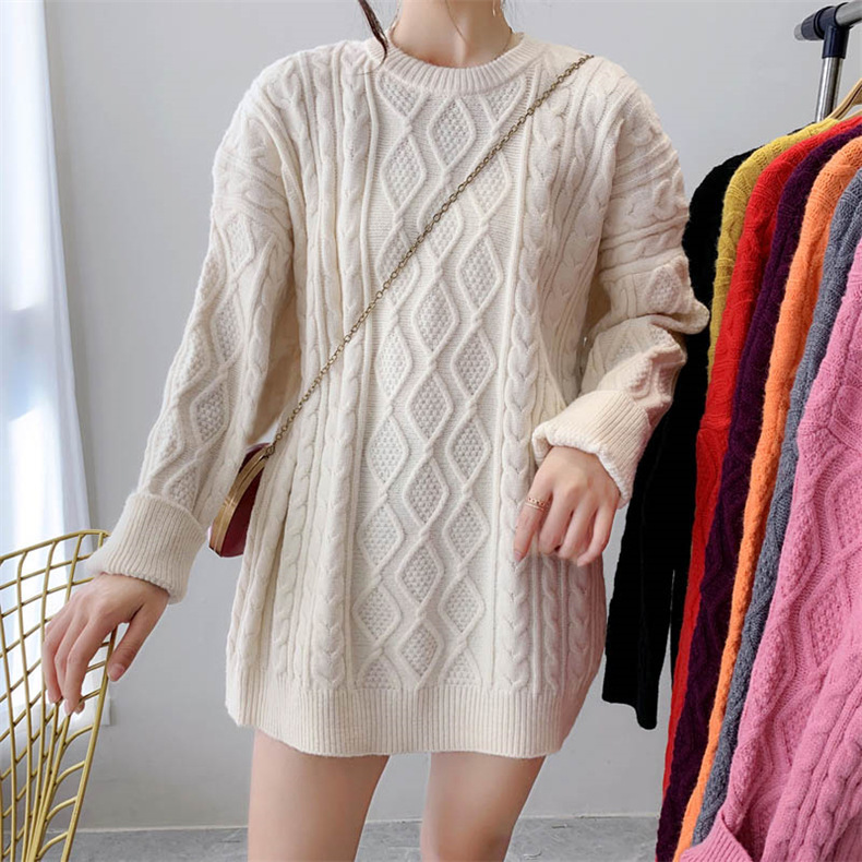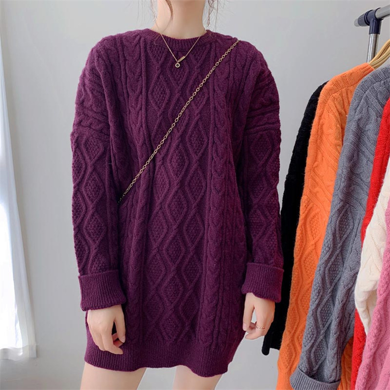플러스 사이즈 스웨터 여성의 한국식 패션 느슨한 대형 게으른 바람 트위스트 풀오버 중간 길이 여성의 2022 새로운 가을과 겨울스토어 가기