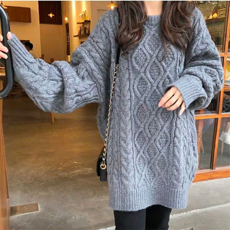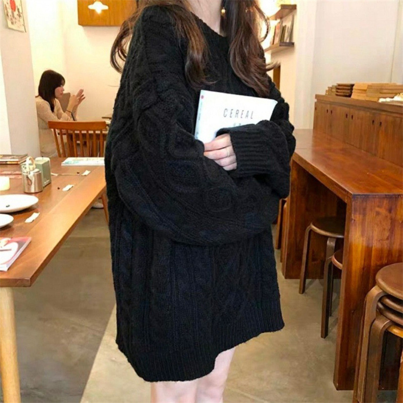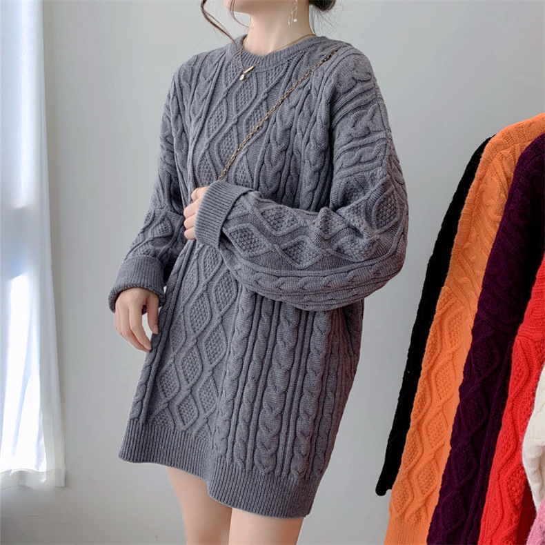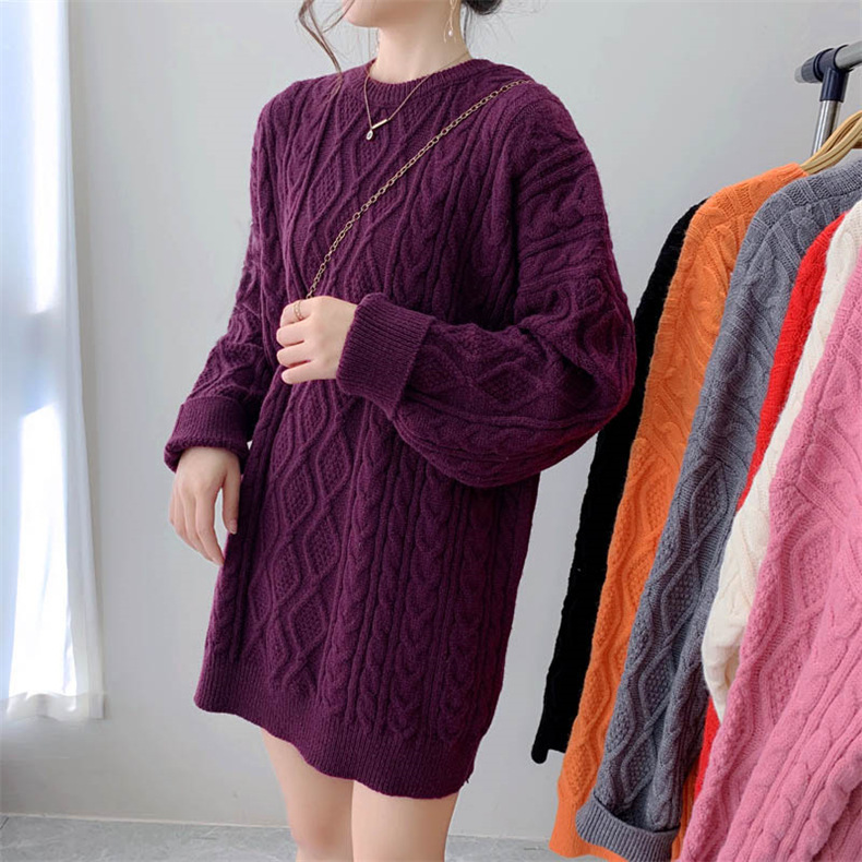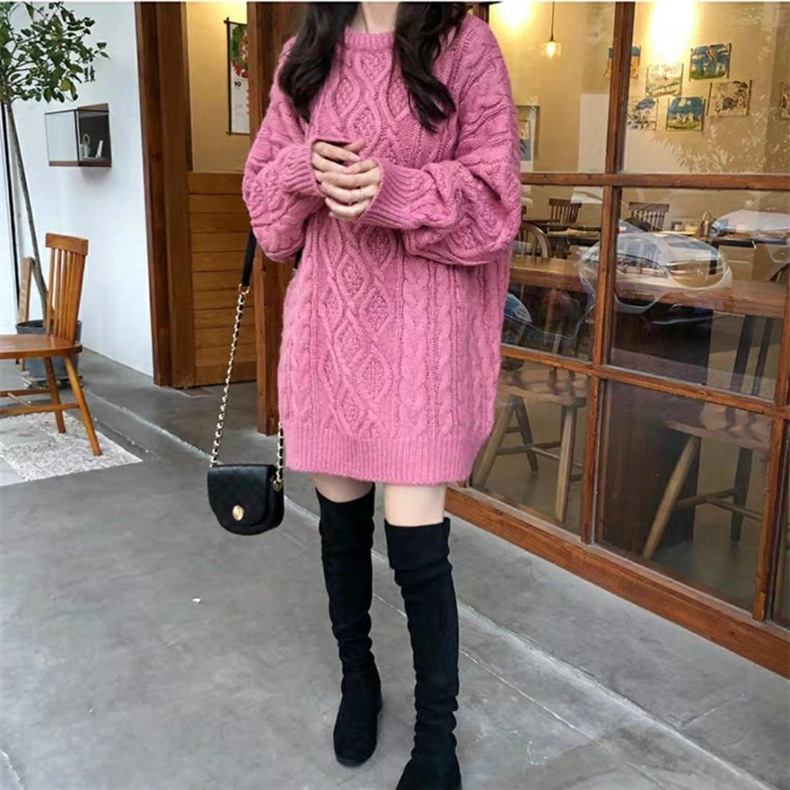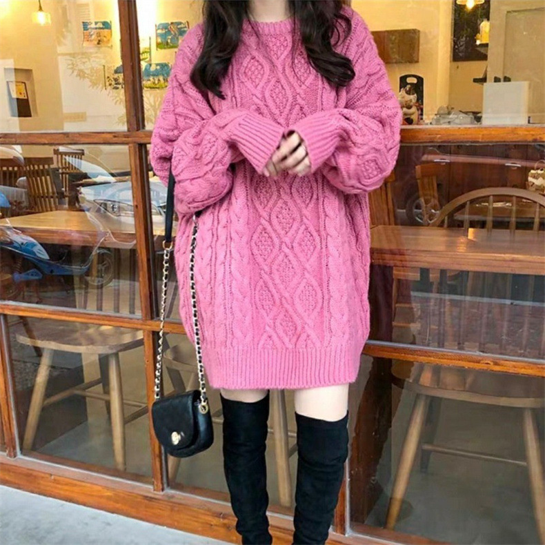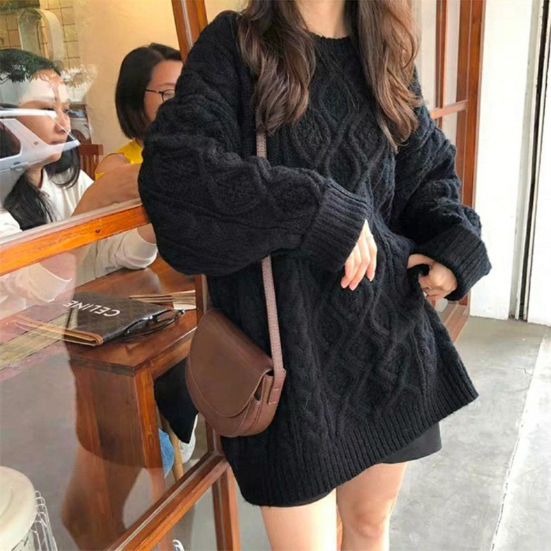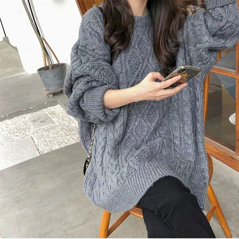 플러스 사이즈 스웨터 여성의 한국식 패션 느슨한 대형 게으른 바람 트위스트 풀오버 중간 길이 여성의 2022 새로운 가을과 겨울