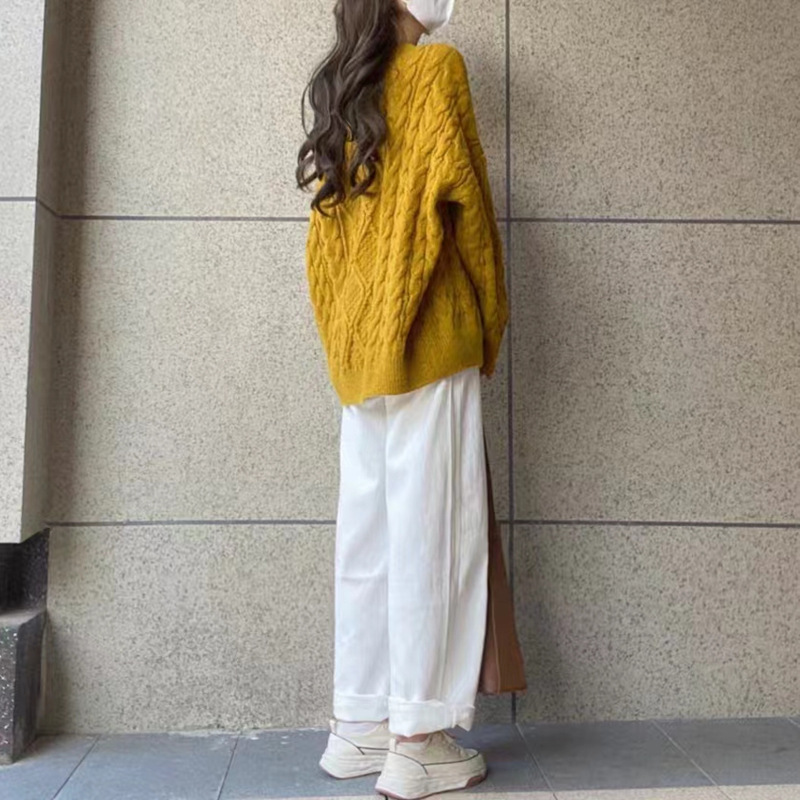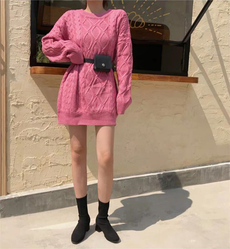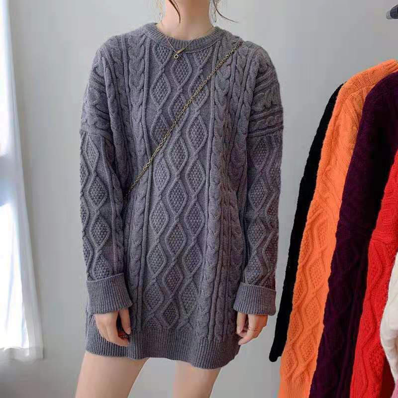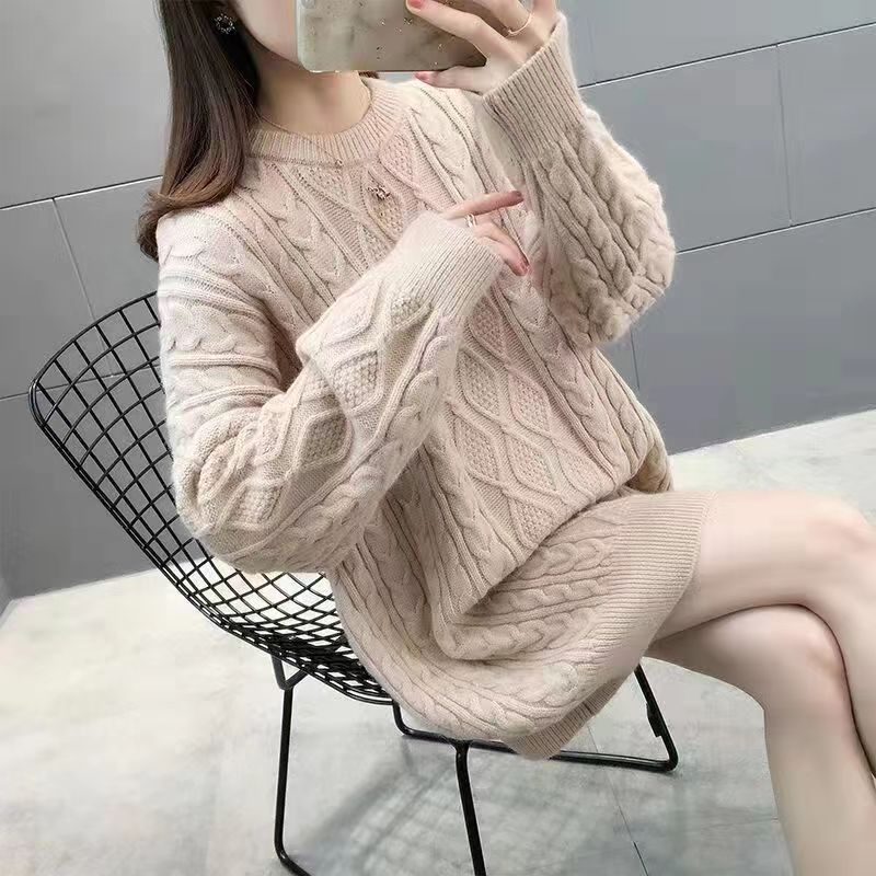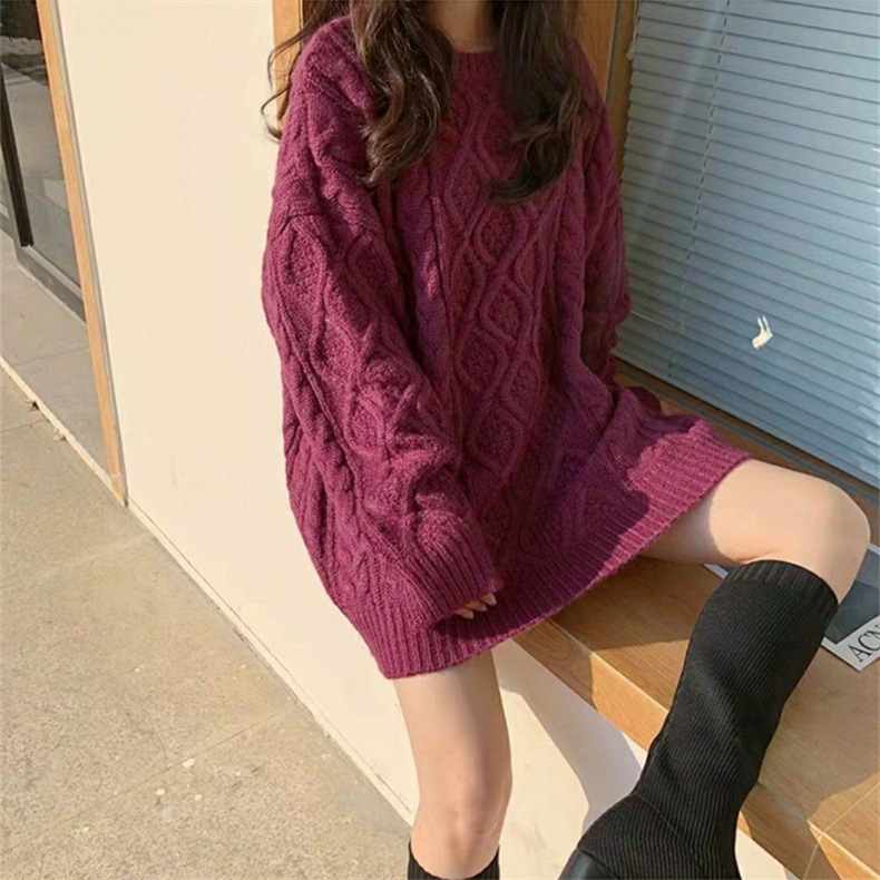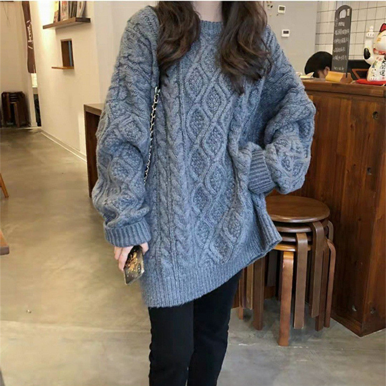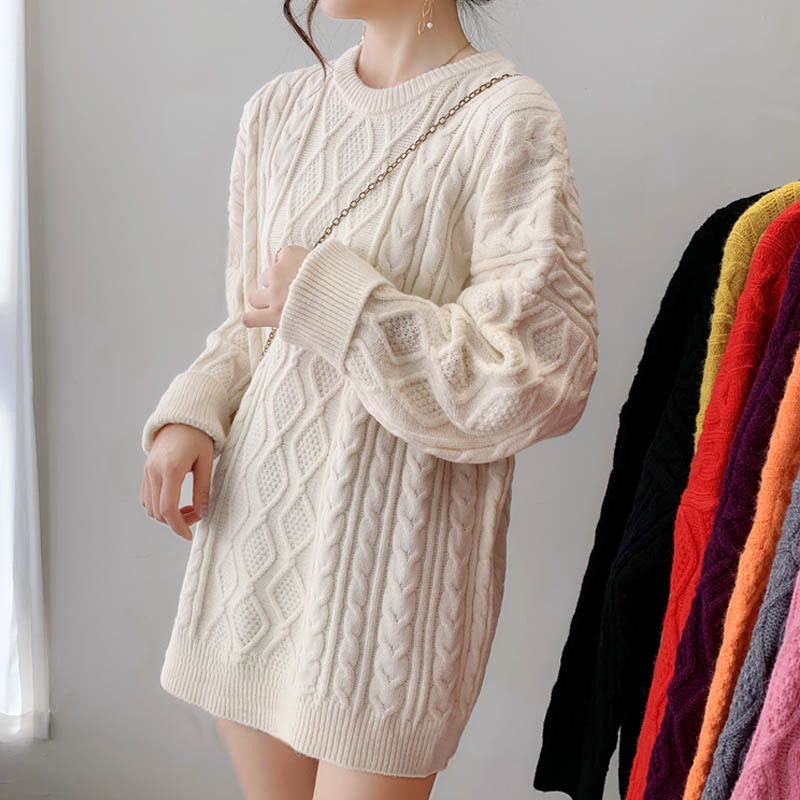 플러스 사이즈 스웨터 여성의 한국식 패션 느슨한 대형 게으른 바람 트위스트 풀오버 중간 길이 여성의 2022 새로운 가을과 겨울