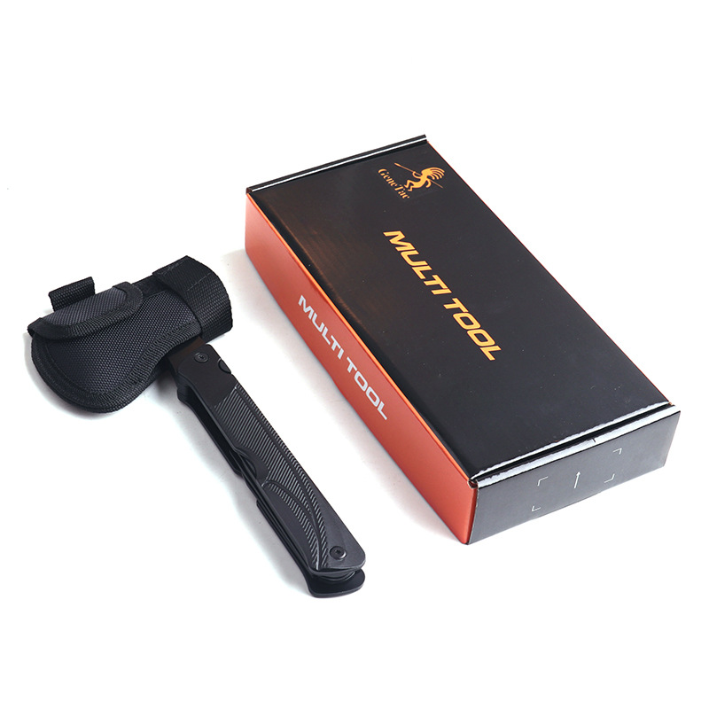 功能展示: 斧头&锤子,口哨&打火石,一字起子&开罐器&内六角扳手&开瓶器 ,小刀 十字起子&鱼鳞刮,木据&刻度尺。