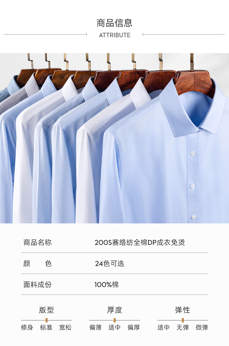 200S 면 DP 의류 비 다림질 남성 긴팔 셔츠 하이 엔드 비즈니스 남성 화이트 원피스 셔츠 사용자 정의스토어 가기