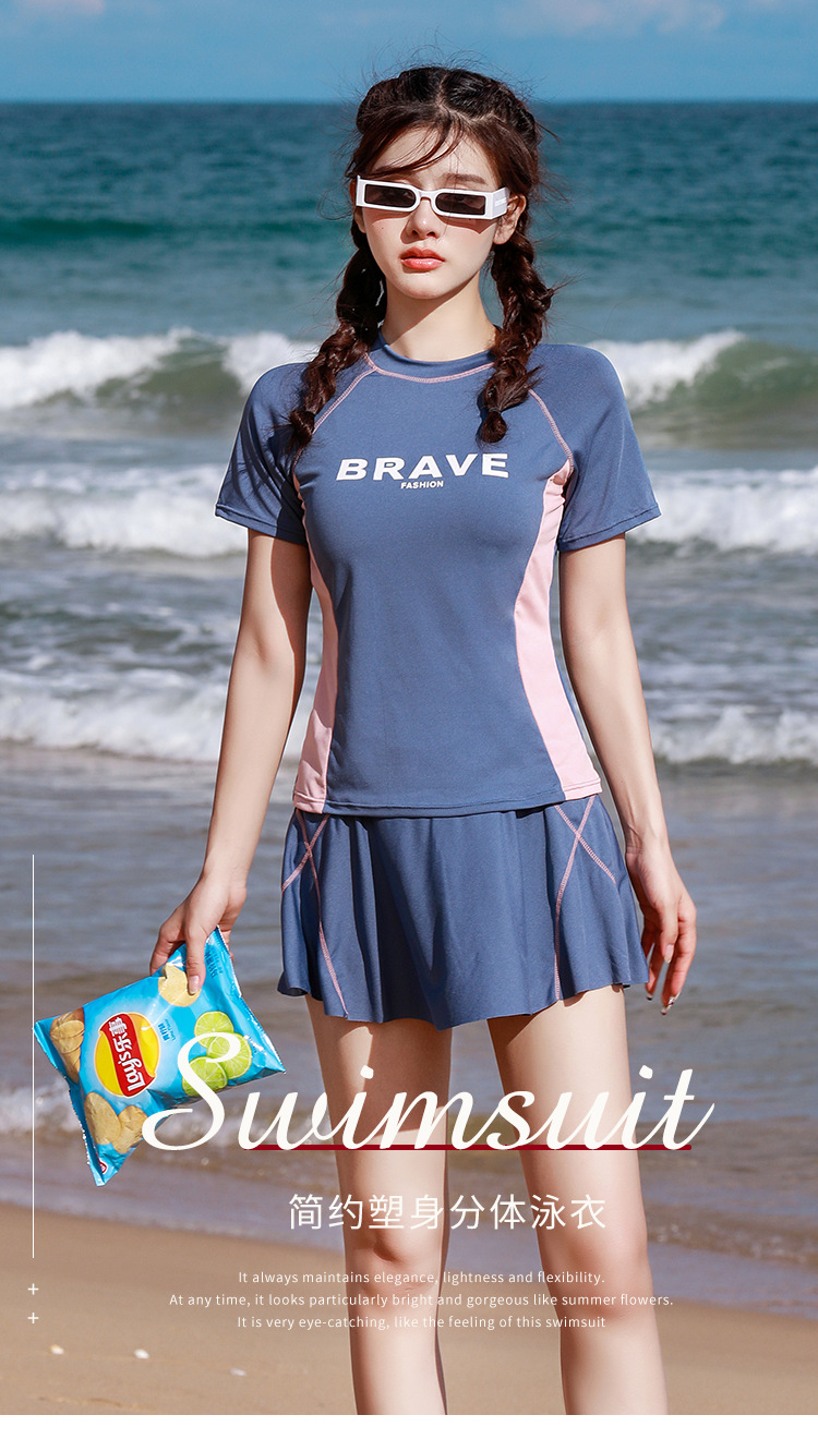 분할 수영복 여성 폭발 스포츠 슬림 배꼽 커버 패션 보수적 인 작은 가슴 스커트 수영복 온천 수영복 도매