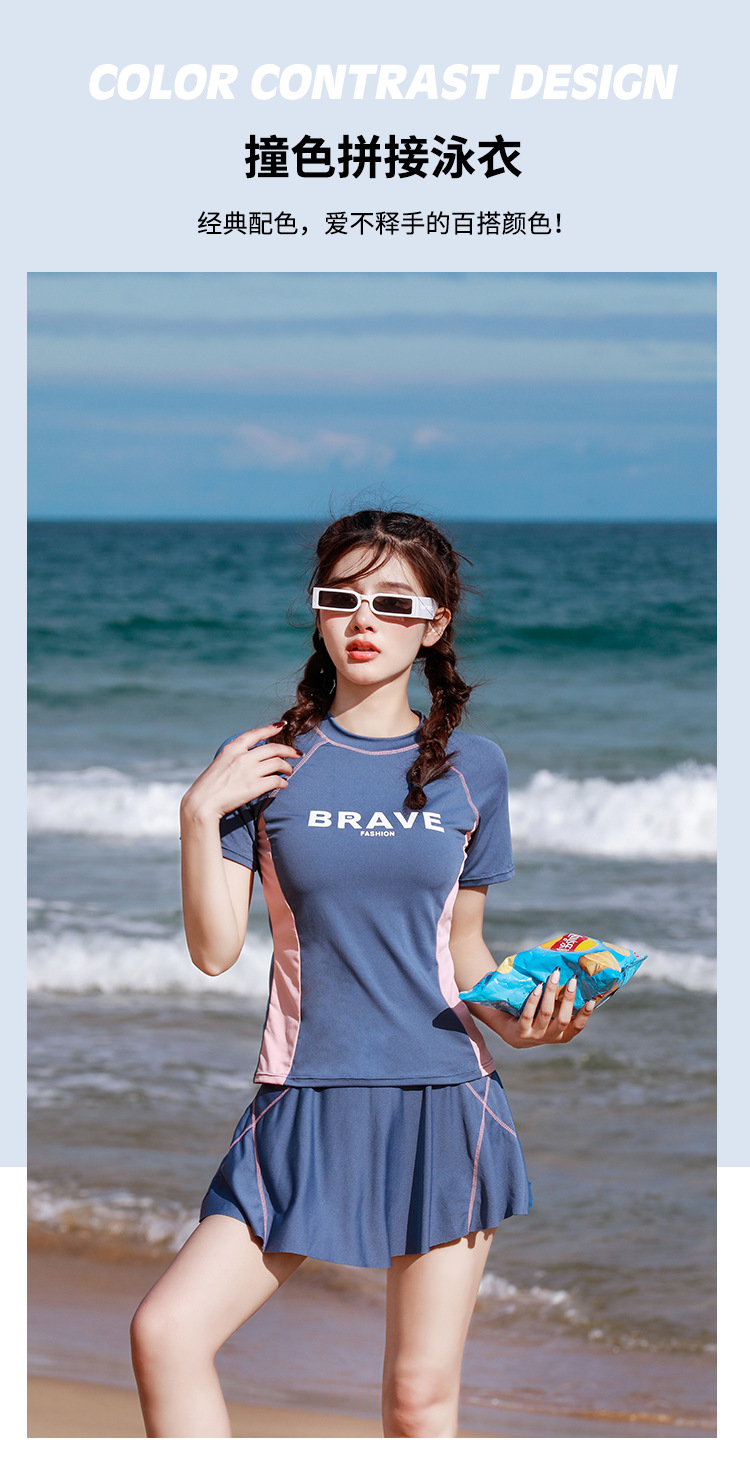 분할 수영복 여성 폭발 스포츠 슬림 배꼽 커버 패션 보수적 인 작은 가슴 스커트 수영복 온천 수영복 도매스토어 가기