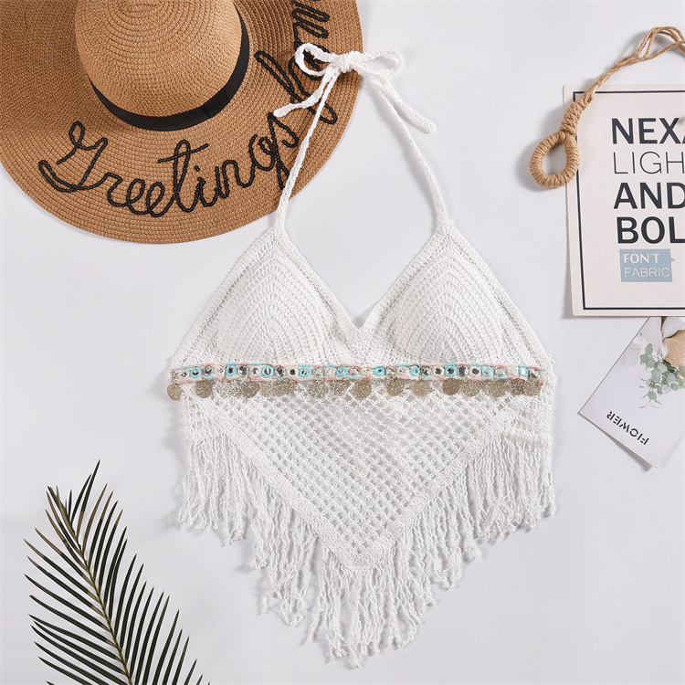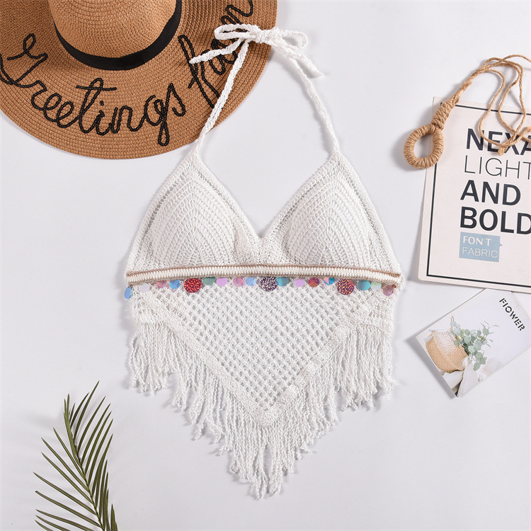 작은 조끼 슬링 여성의 여름 목 짧은 내부 니트 벨트 가슴 패드 상단 등이없는 중공 끈이없는 자수 조끼스토어 가기
