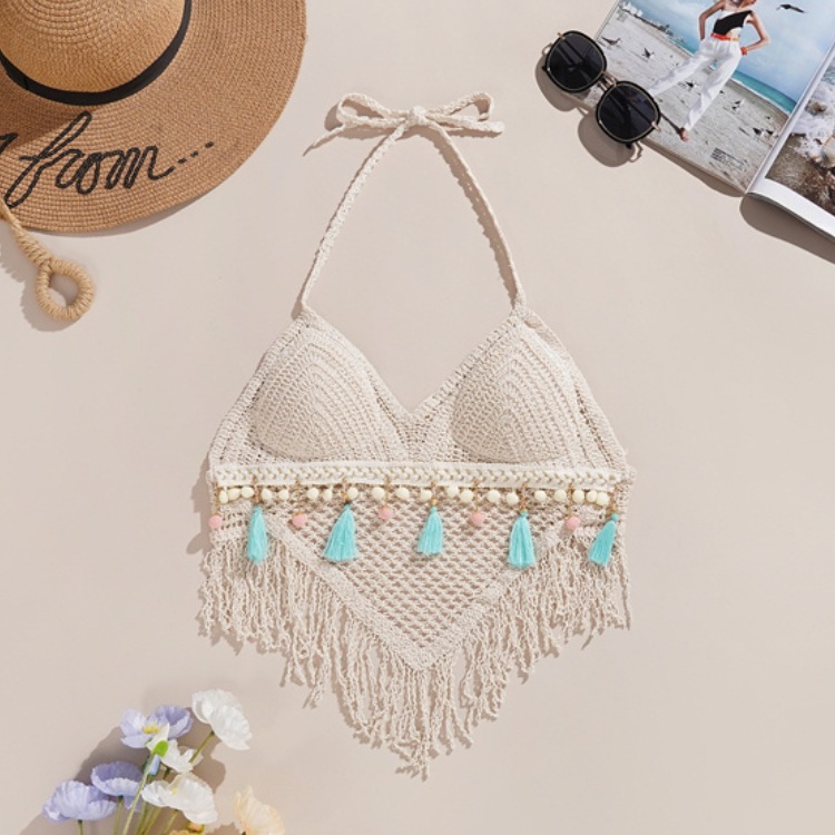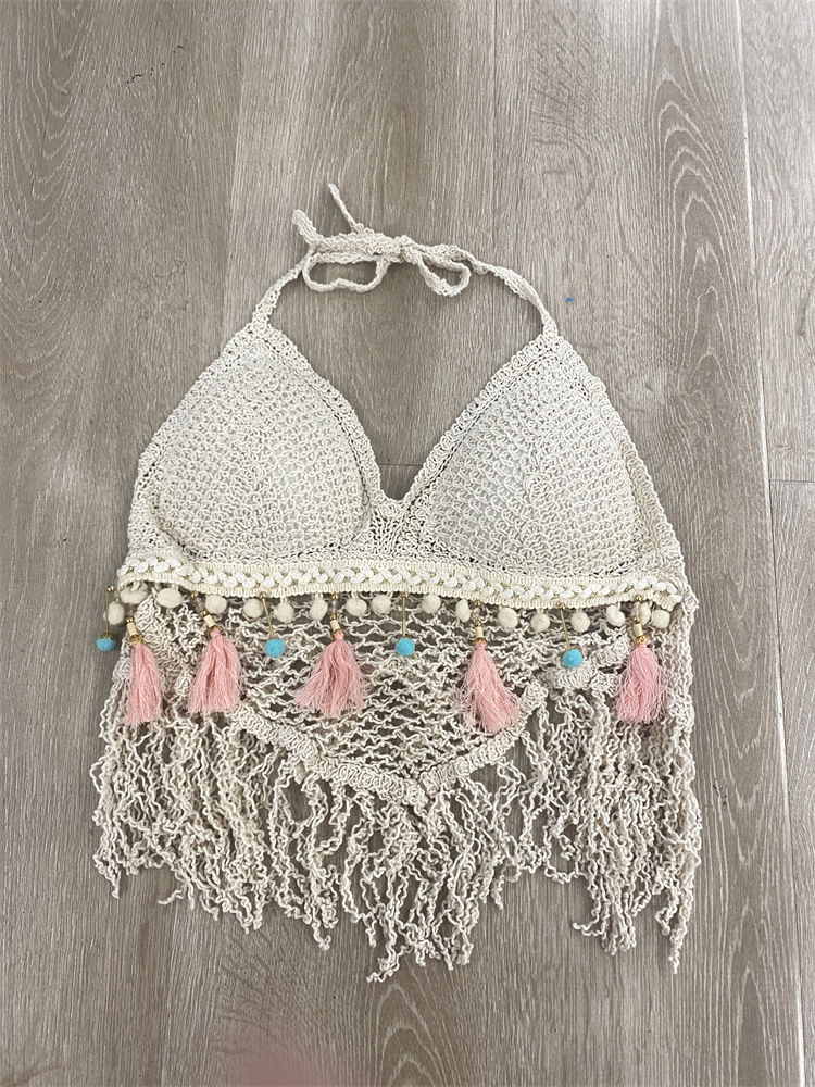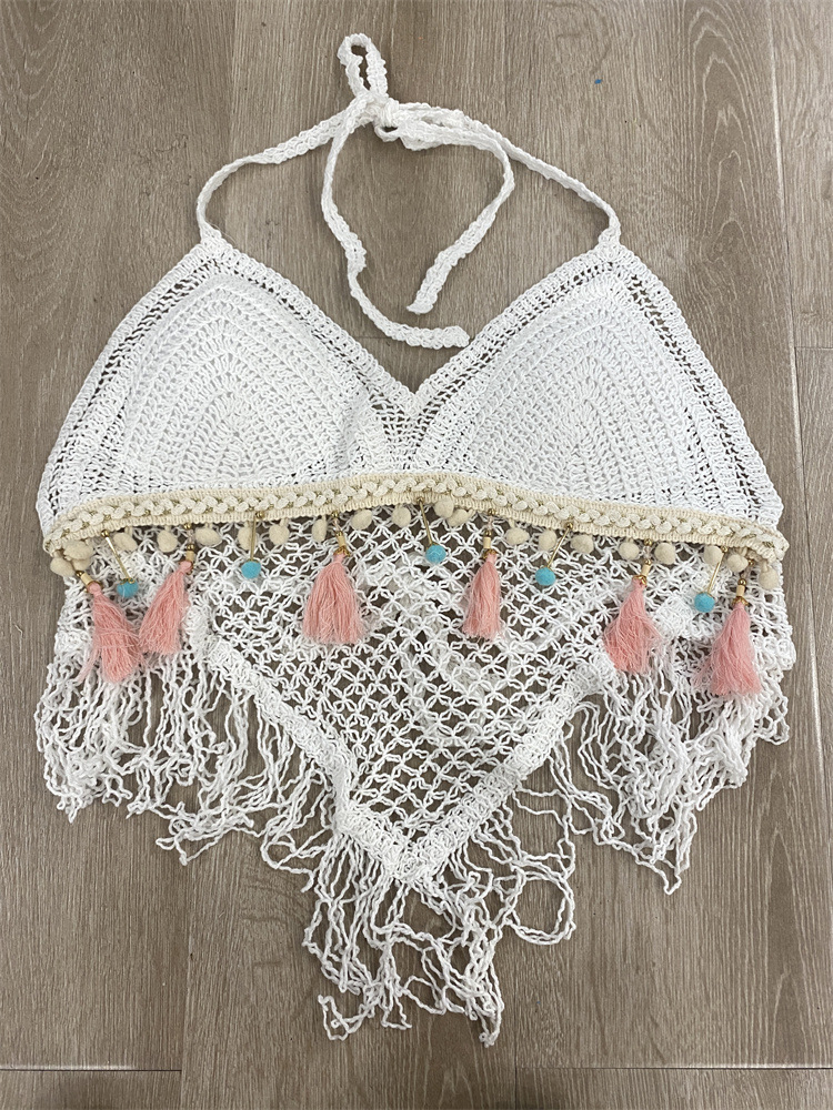 작은 조끼 슬링 여성의 여름 목 짧은 내부 니트 벨트 가슴 패드 상단 등이없는 중공 끈이없는 자수 조끼