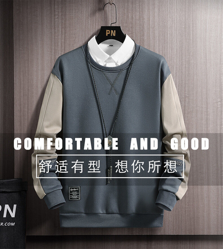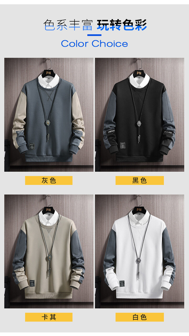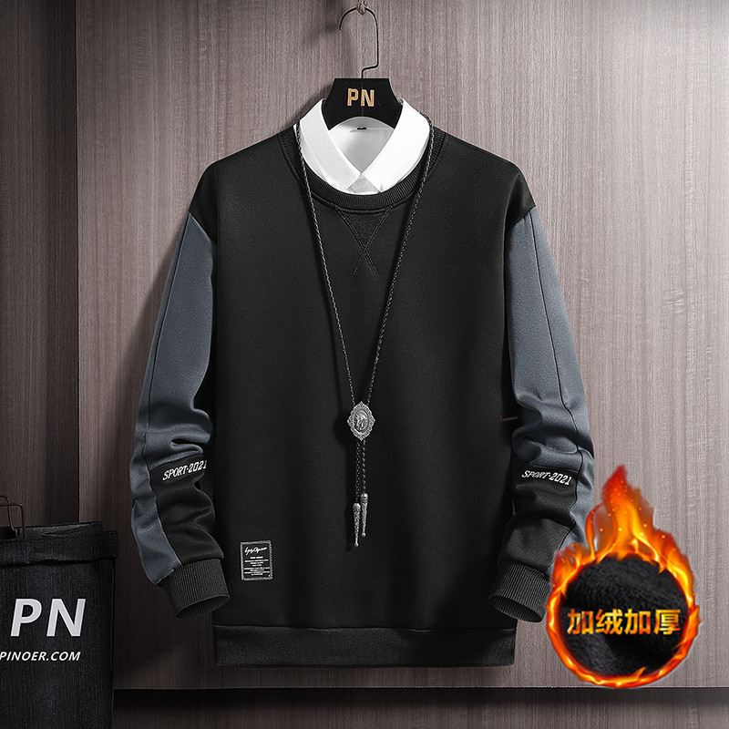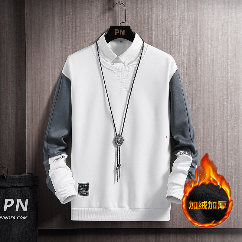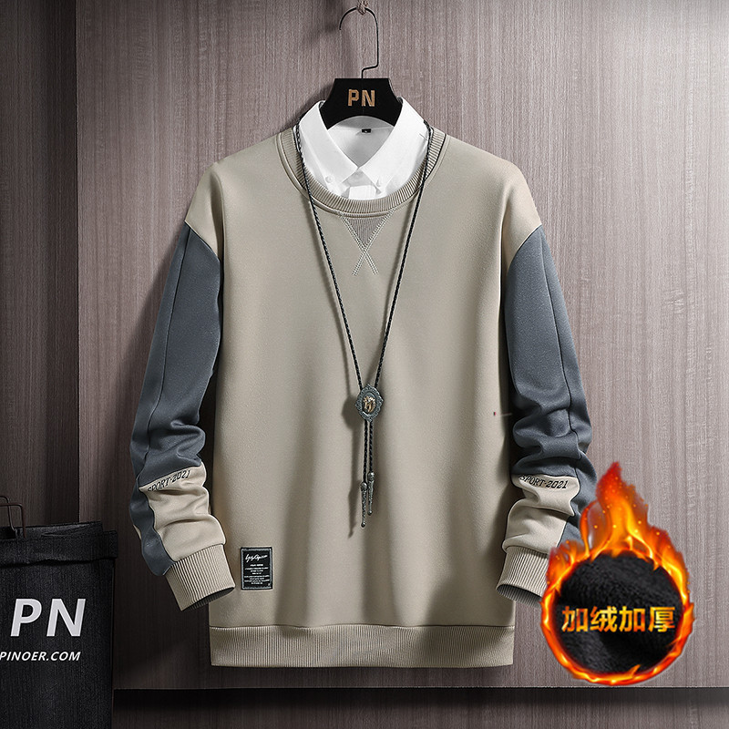 2023 새로운 가을, 겨울 남성 운동복 긴팔 탑 남성 한국 스타일 느슨한 벨벳 두꺼운스토어 가기