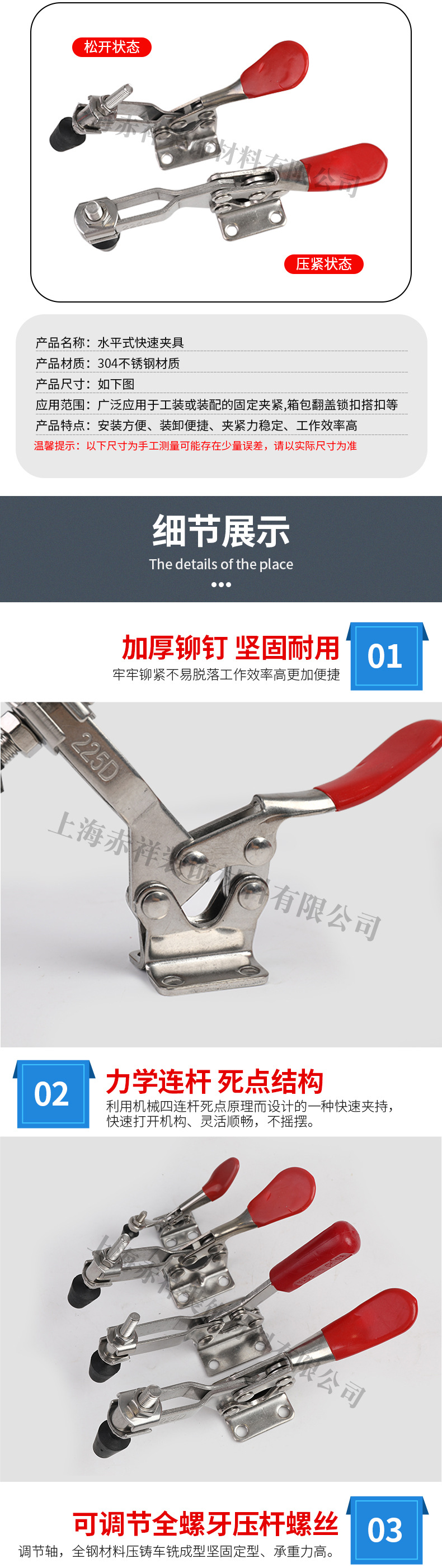 수평 빠른 고정장치 노루기 푸시-풀 고정장치 목공 압력 플레이트 고정장치 용접 툴링 클램프