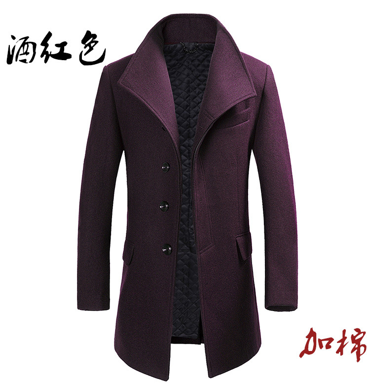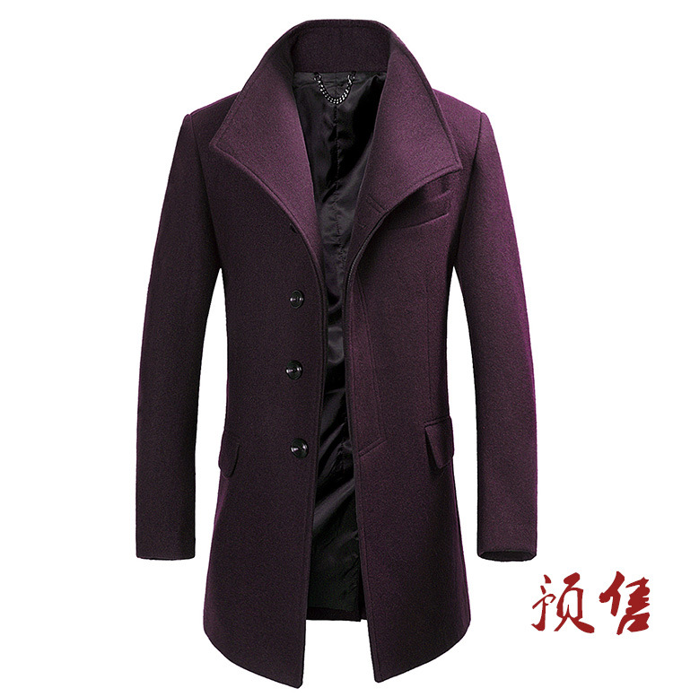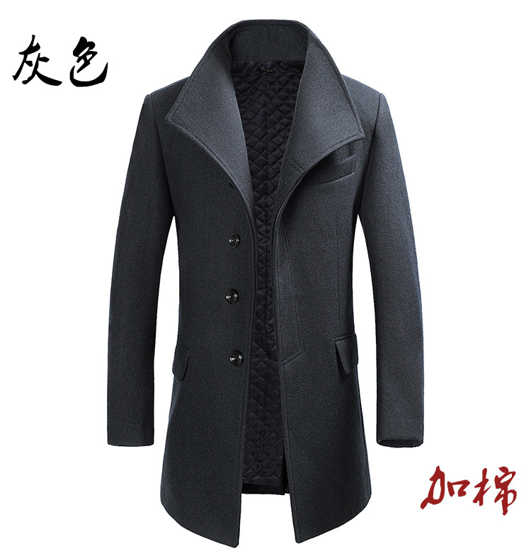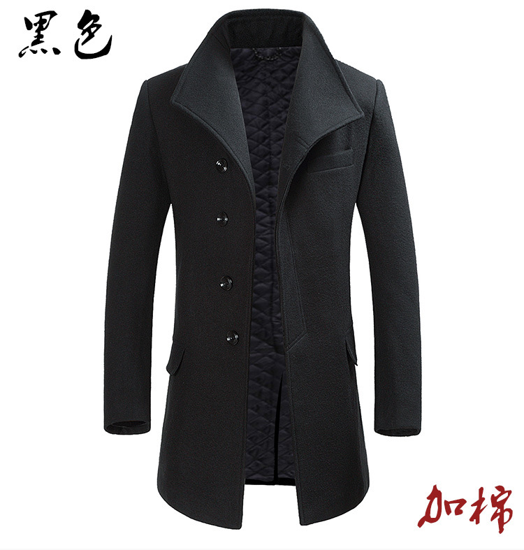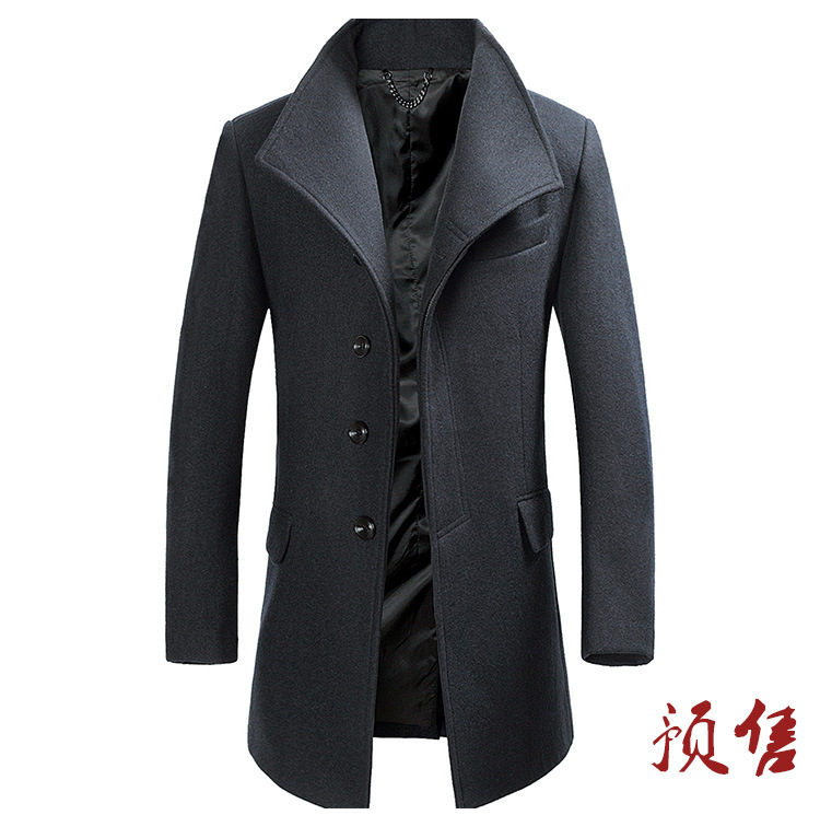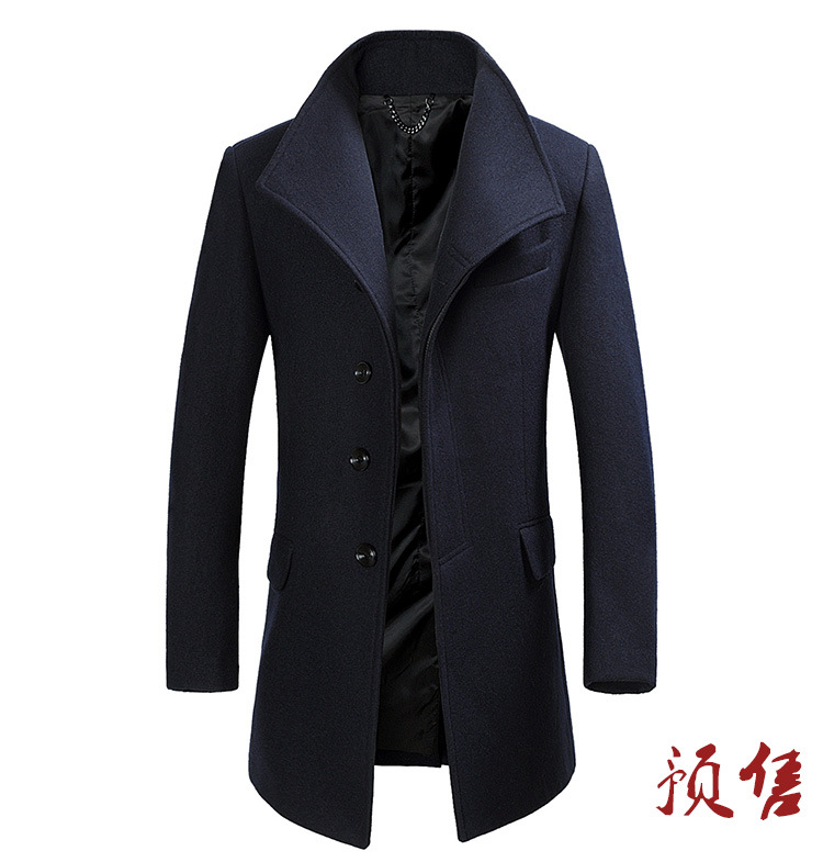 2025 봄, 가을 코튼 중간 길이 모직 코트 남성 한국 스타일 청소년 비즈니스 스탠드 칼라 윈드 브레이커 모직 코트스토어 가기