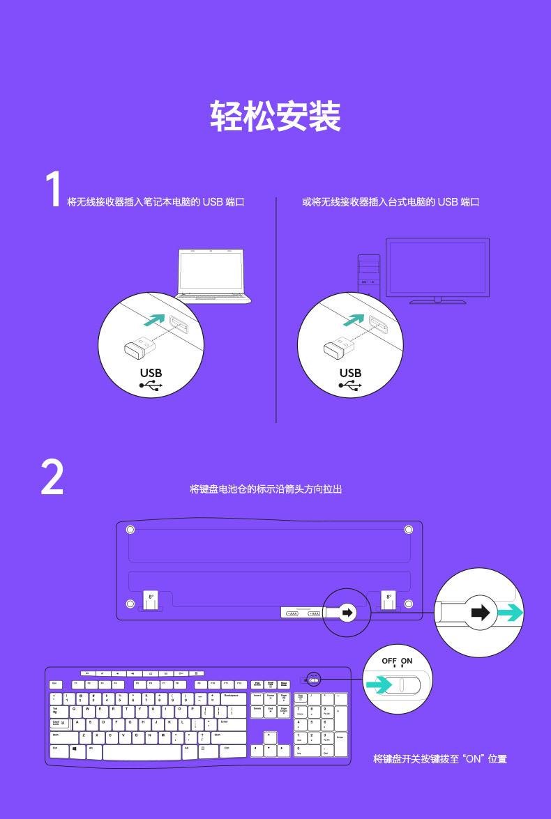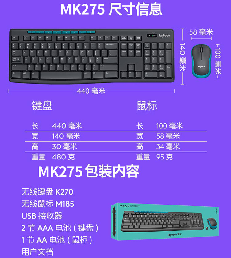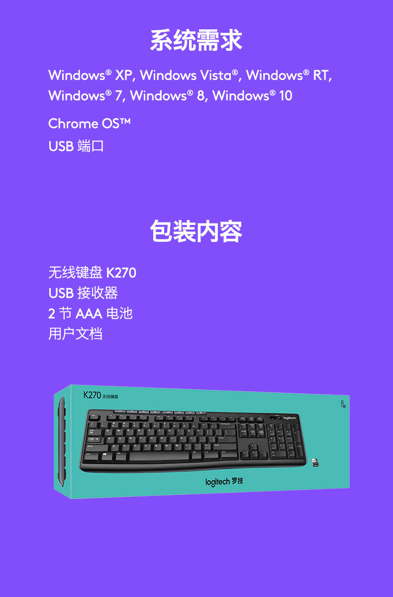 Logitech K270 무선 키보드 멀티미디어 풀 사이즈 내구성 사무실 홈 비즈니스 USB 휴대용 타이핑 키보드스토어 가기