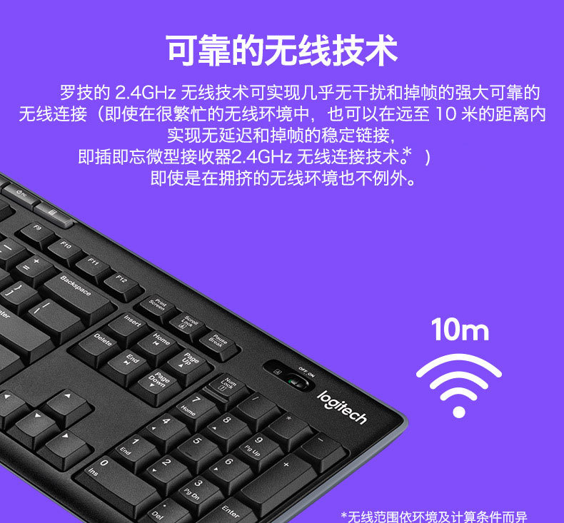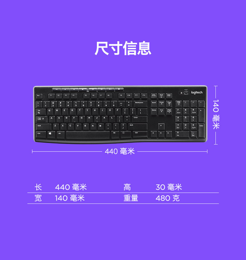 Logitech K270 무선 키보드 멀티미디어 풀 사이즈 내구성 사무실 홈 비즈니스 USB 휴대용 타이핑 키보드