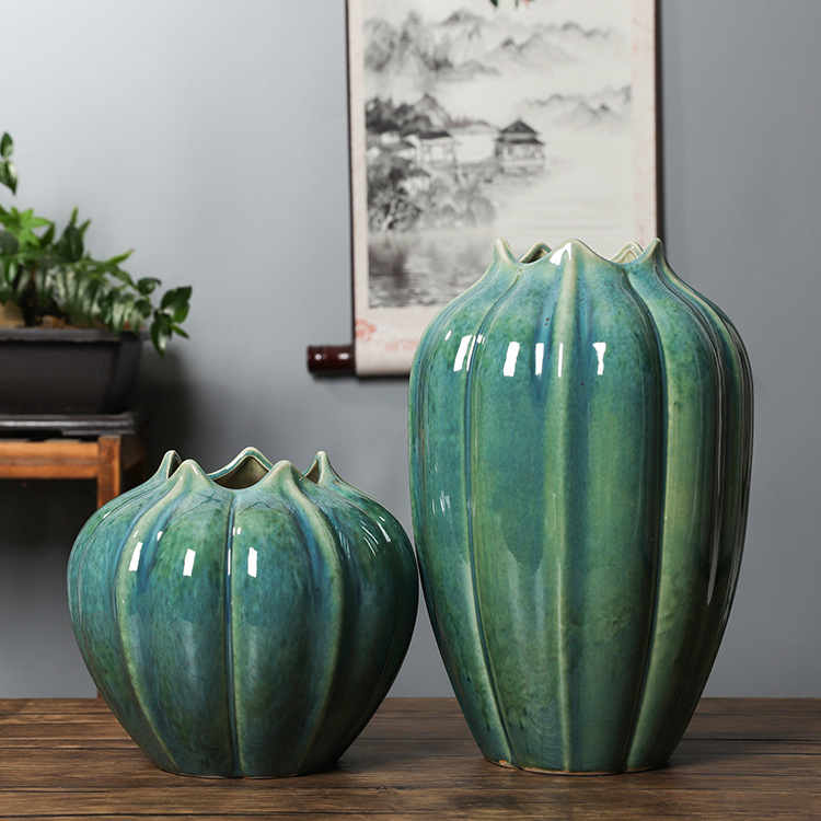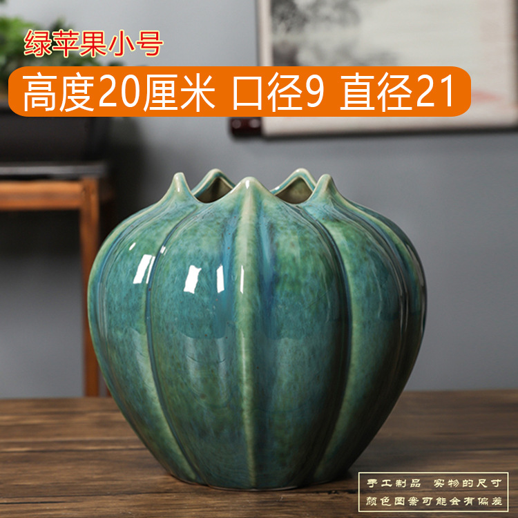 가벼운 럭셔리 간단한 럭셔리 단색 호박 꽃병 장식품 녹색 사과 현대 보석 거실 창조적 인 세라믹 창조적 인 장식품