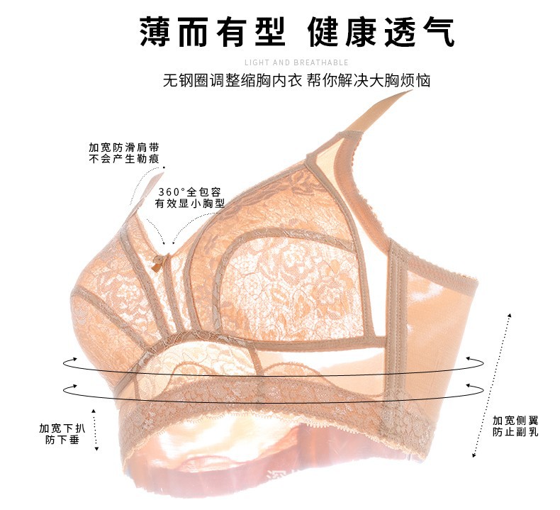큰 가슴 작은 안티 속옷 여자의 얇은 처진 paramary 가슴 비 무테 전체 컵 브래지어 플러스 사이즈 수축 브래지어 여름스토어 가기