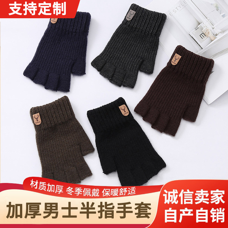 남자 반 손가락 장갑 가을과 겨울 봉제 니트 방풍 장갑 야외 여행 승마 따뜻한 장갑 도매스토어 가기