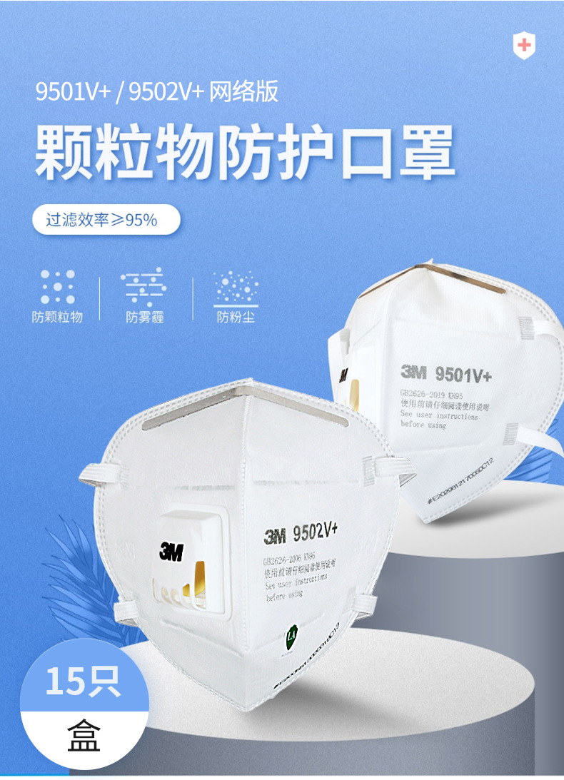 3M 마스크 박스 9501V /9502V 독립 포장 마스크 밸브 산업 먼지 마스크 도매 KN95