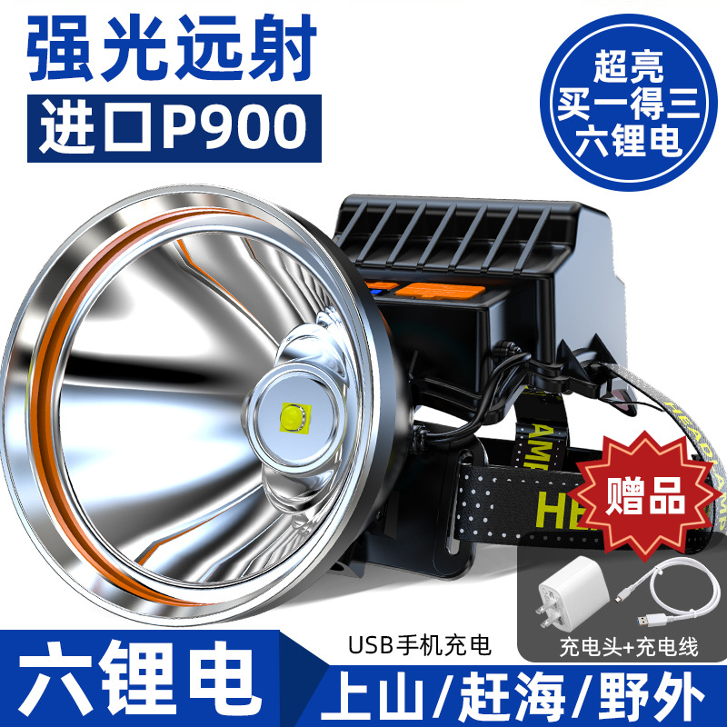 야외용 장시간 사용 가능, 고출력, 해상 야간 낚시 조명, 헤드 장착형 헤드라이트, 야간 낚시용 리튬 배터리 유도 손전등