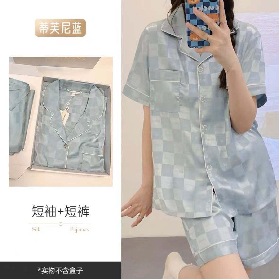 • [반소매 + 반바지] 루즈 파우더 격자