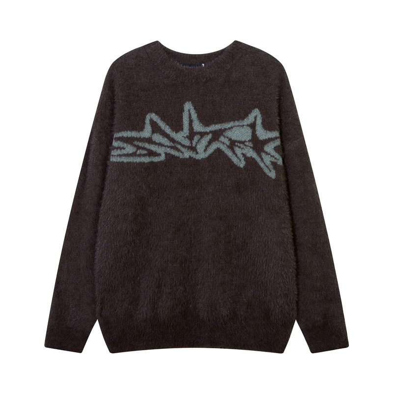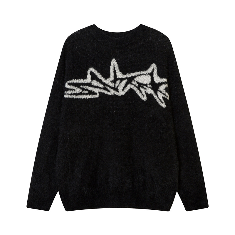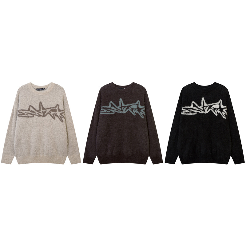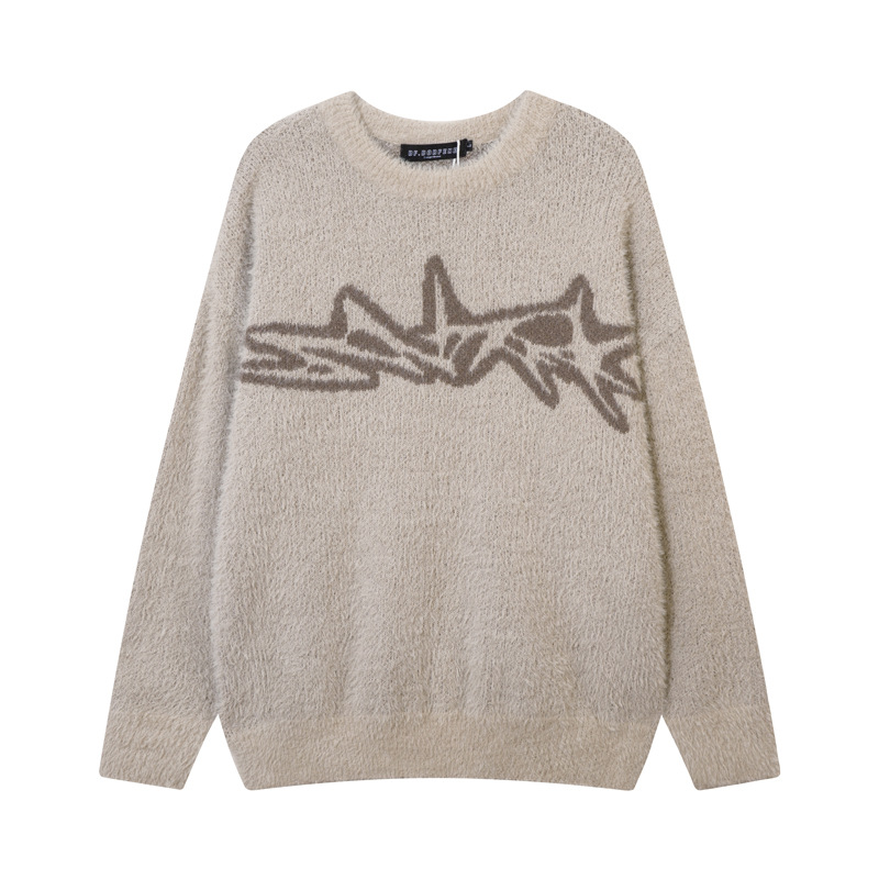 하이 스트리트 내셔널 패션 힙합 알파벳 자카드 스웨터 남성 패션 브랜드 오버 사이즈 느슨한 게으른 스타일 레트로 니트 스웨터스토어 가기