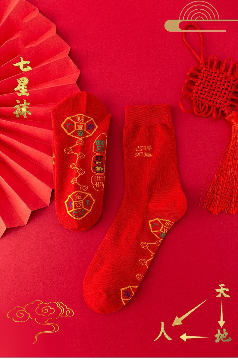 양말 여성용 중간 배럴 페달 구리 돈 7 성 짝수 구슬 양말 면 남녀 탄생 연도 빨강 양말 7 축복 번영 롱스토어 가기