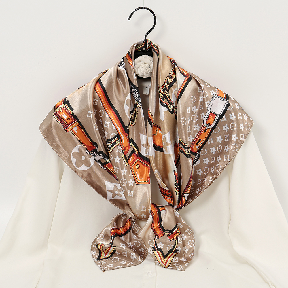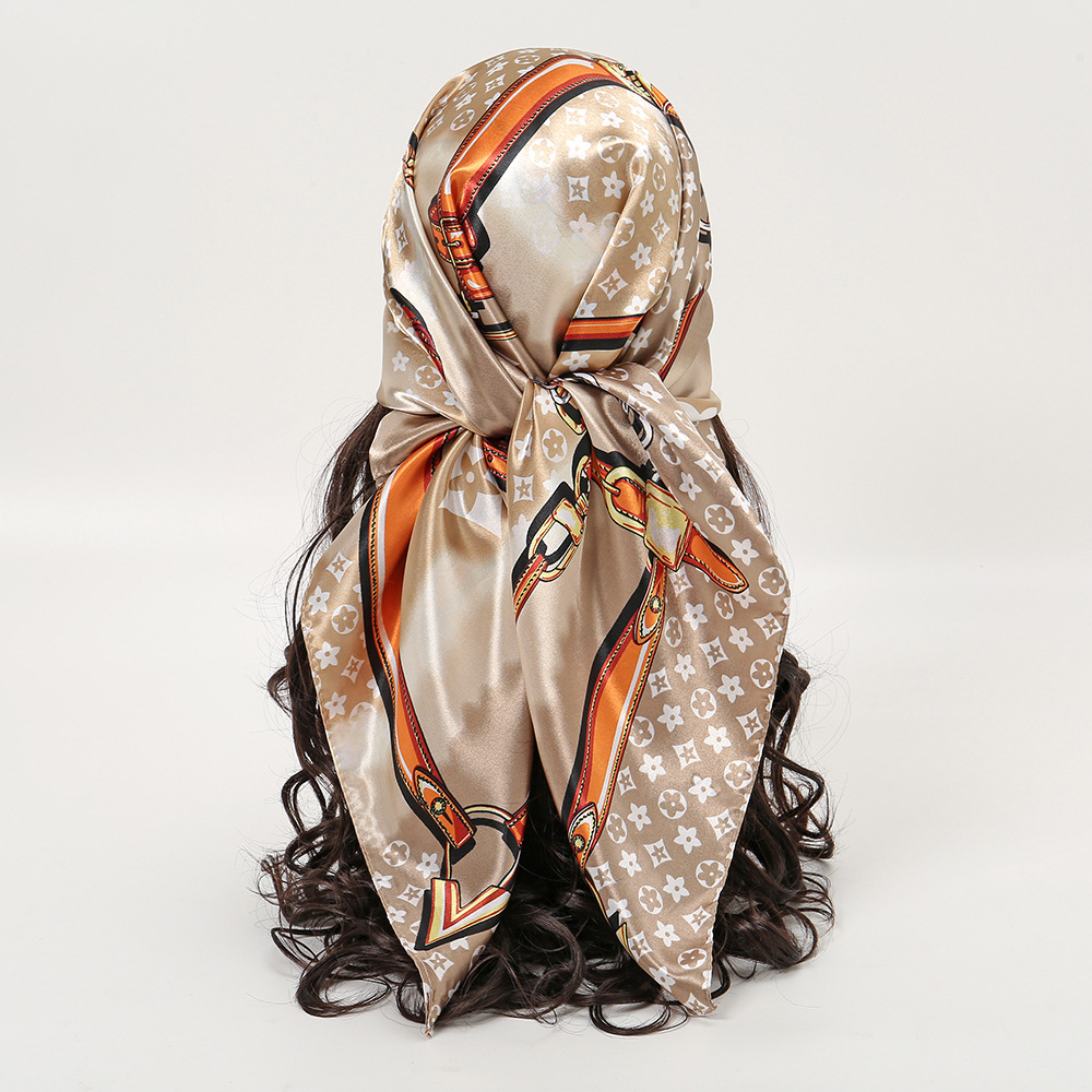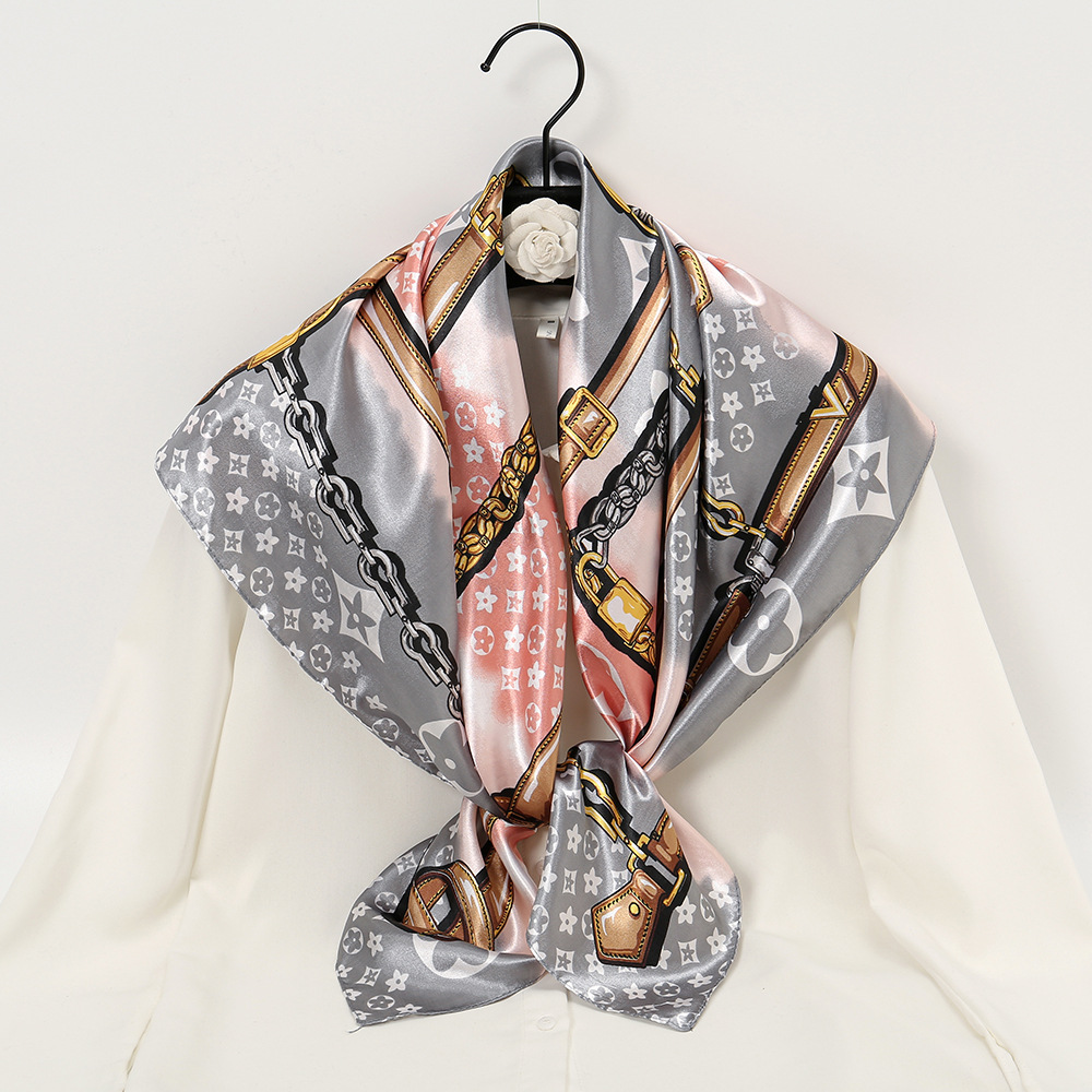 유럽과 미국의 새로운 모조 실크 체인 인쇄 90 대형 사각 스카프 유행 모든 매치 발가락 커버 스카프 여성용