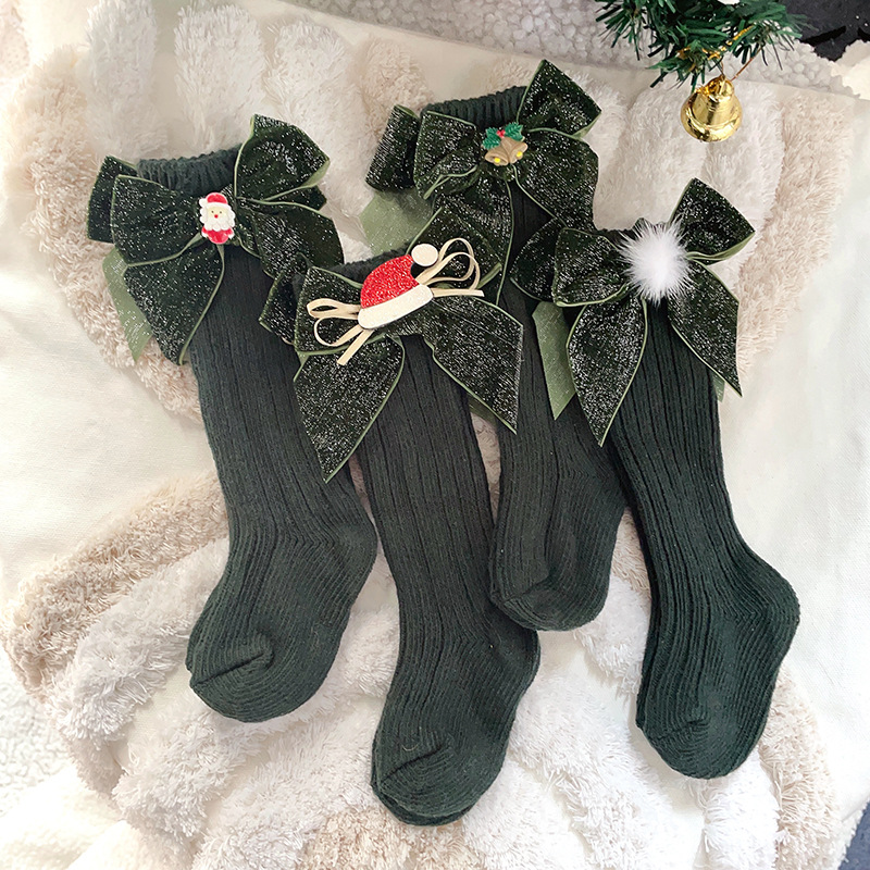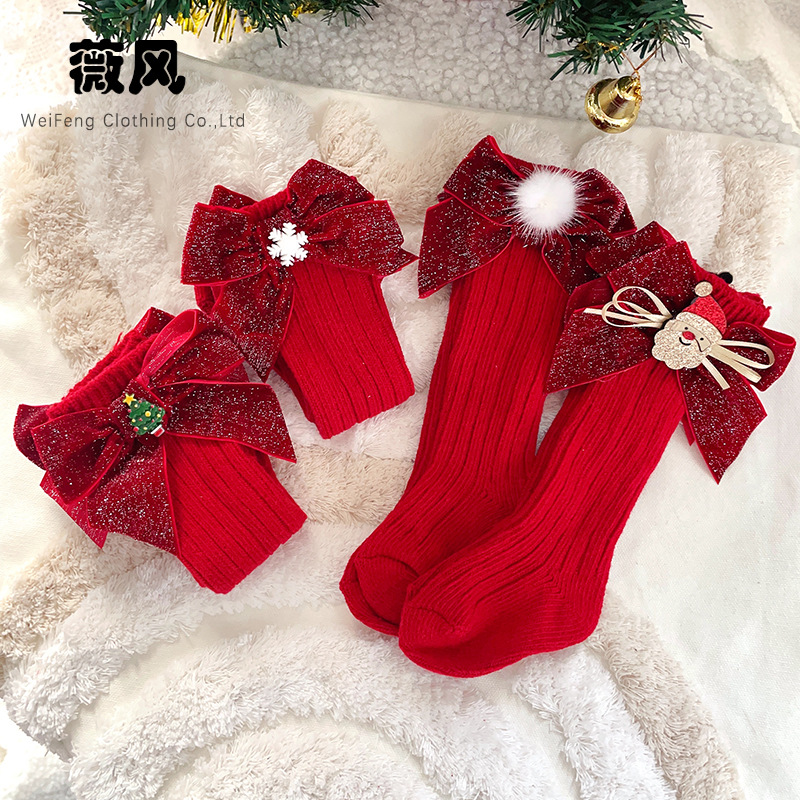 스페인 어린이 양말 스파클링 보우 울 중간 길이 양말 신생아 아기 만화 크리스마스 양말