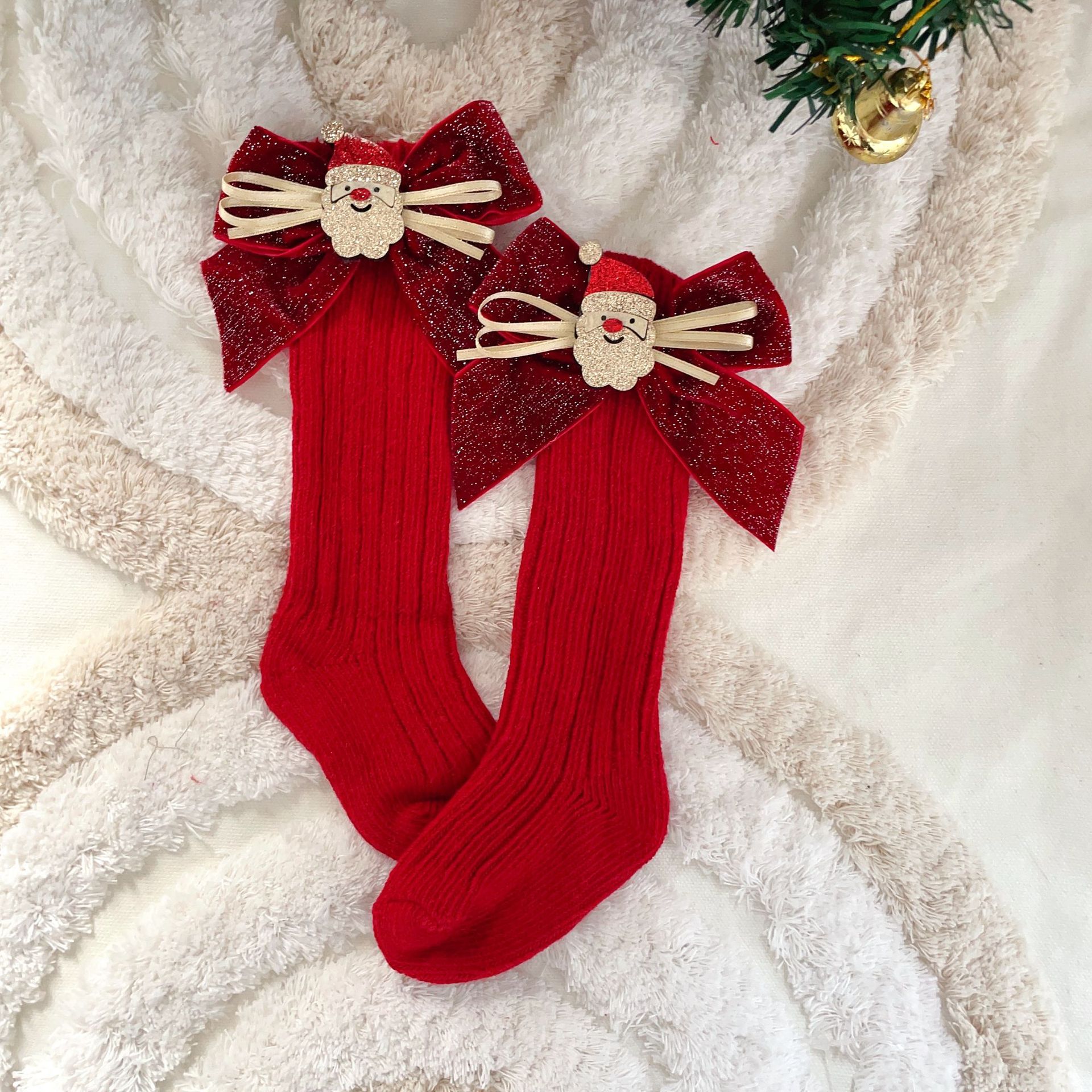 스페인 어린이 양말 스파클링 보우 울 중간 길이 양말 신생아 아기 만화 크리스마스 양말스토어 가기