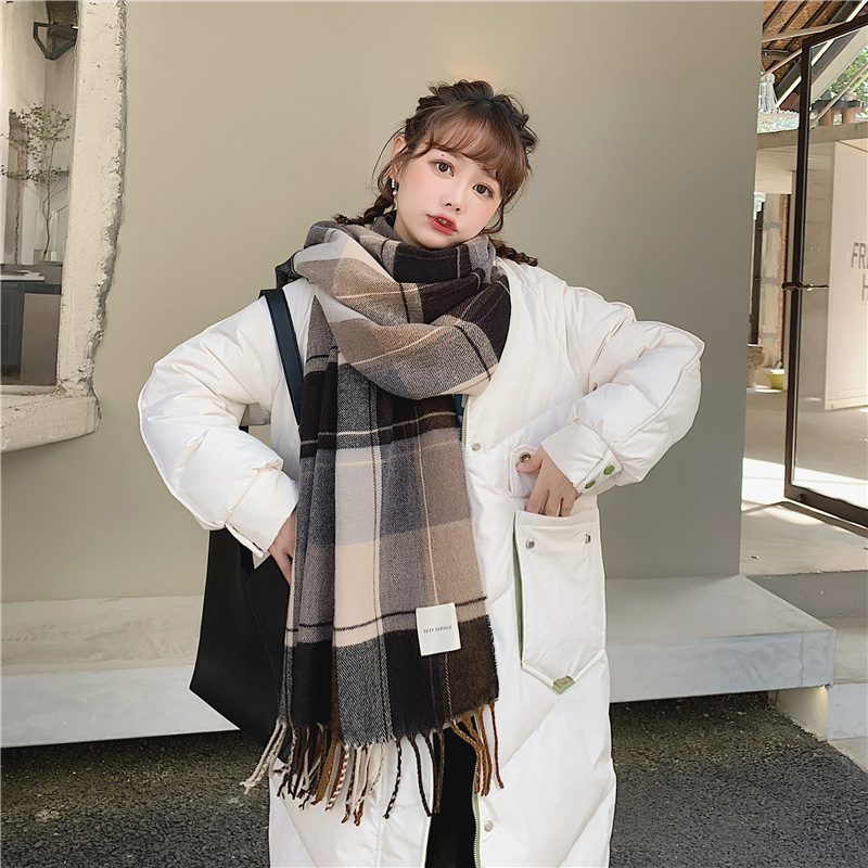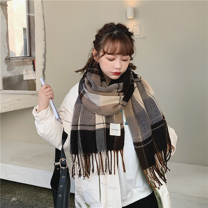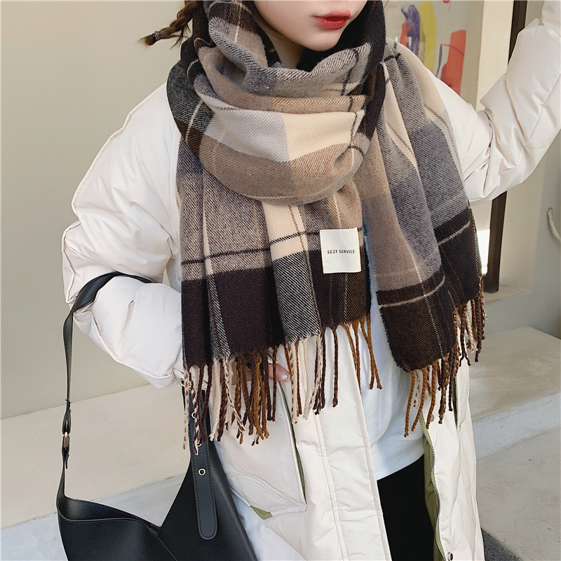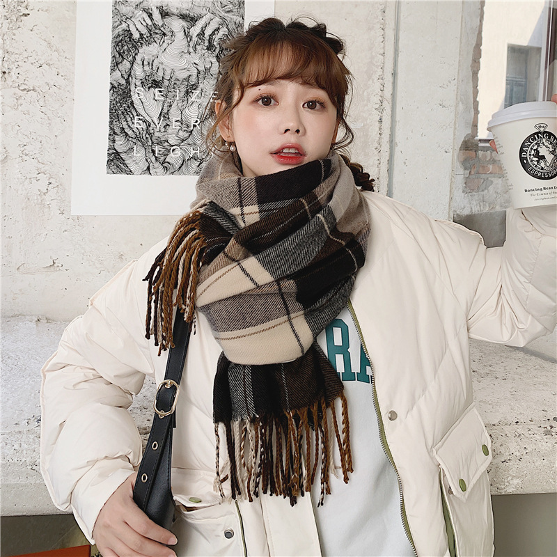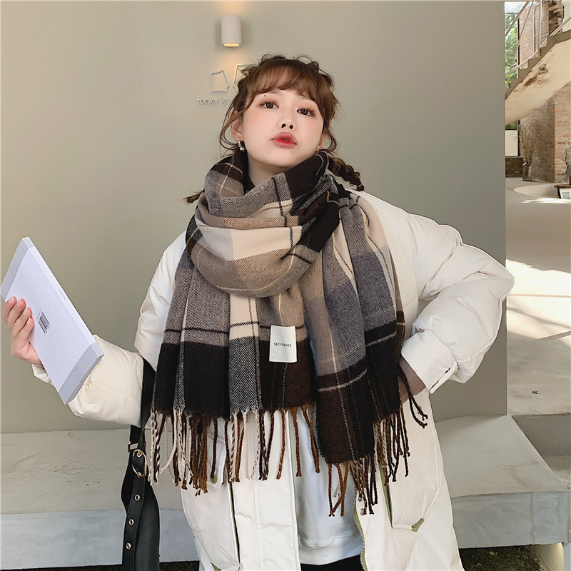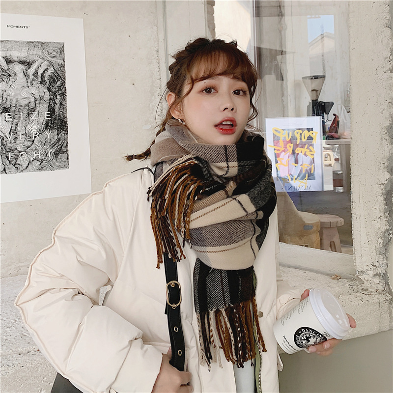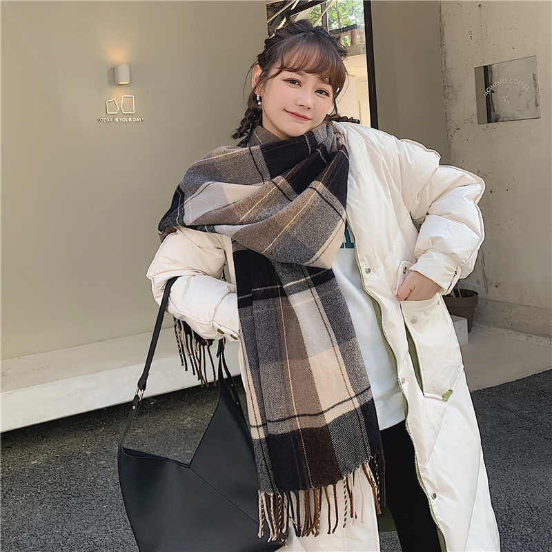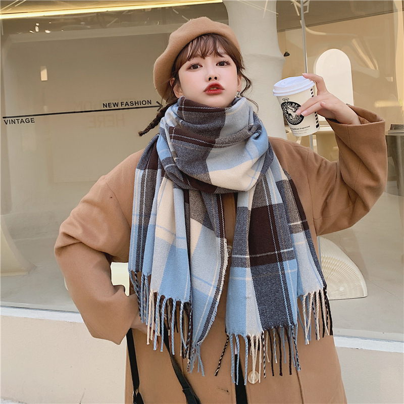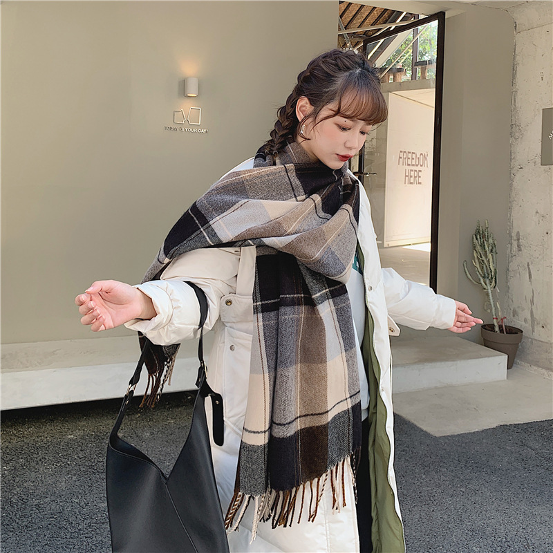 가을 겨울 여성용 클래식 모조 캐시미어 스카프 한국 스타일 다용도 격자 무늬 술 긴 목도리 봄과 가을 스카프 겨울스토어 가기