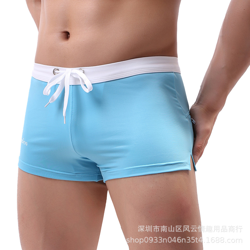 남자 복서 반바지 수영 트렁크 4 코너 수영 트렁크 샌디 바지 블루 그린 섹시한 꽉 팬티 탄성 스트레이트 팬티