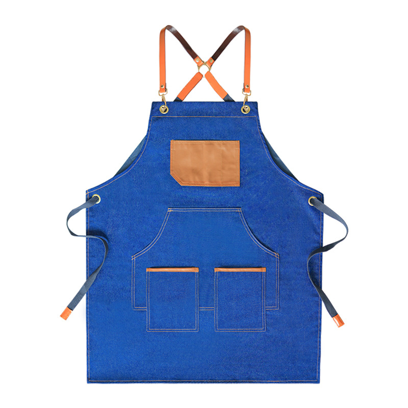 데님 앞치마 우유 차 가게 베이킹 카페 꽃 뜨거운 염색 아티스트 허리 남자의 작업 바지 여자의 인쇄 로고