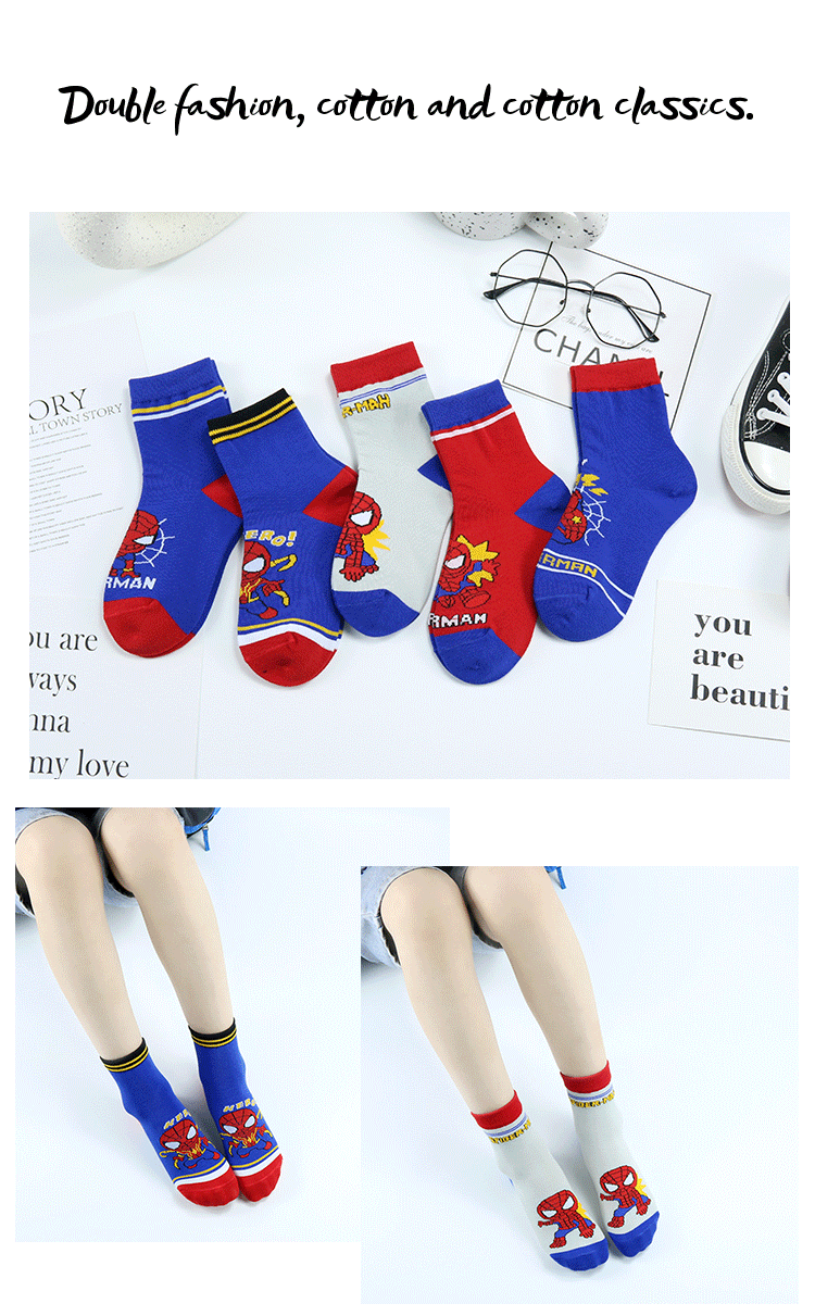 Yi Shuang 어린이 양말 가을과 겨울 새로운 만화 스파이더 맨 중간 길이 양말 빗질 코튼 남아 트렌디 브랜드 스포츠 양말스토어 가기