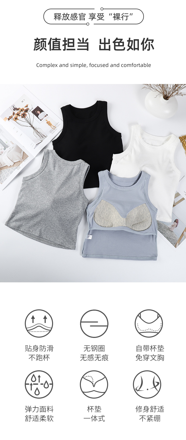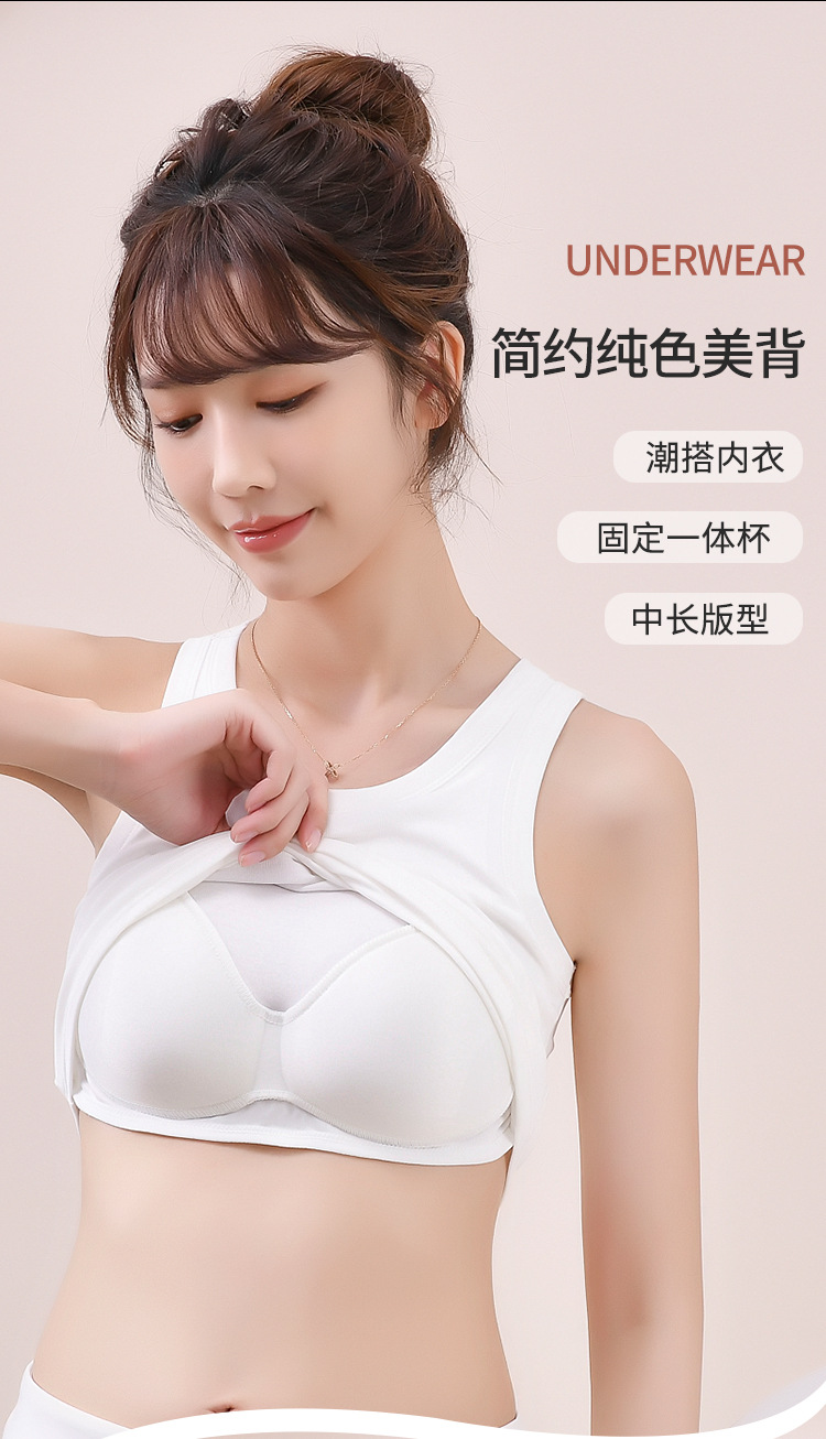 슬링 끈이없는 속옷 소녀의 민소매 기본 조끼 걷기 방지 가벼운 중학교 학생 겉옷 상단 고정 가슴 패드스토어 가기