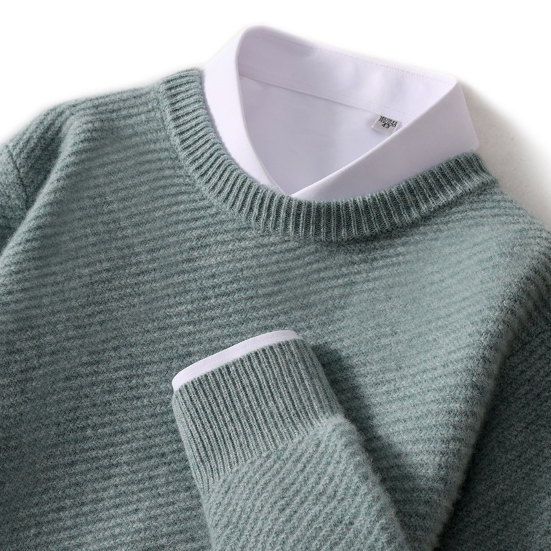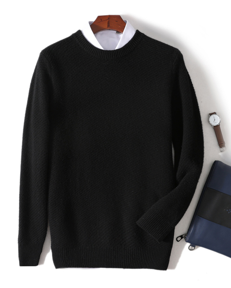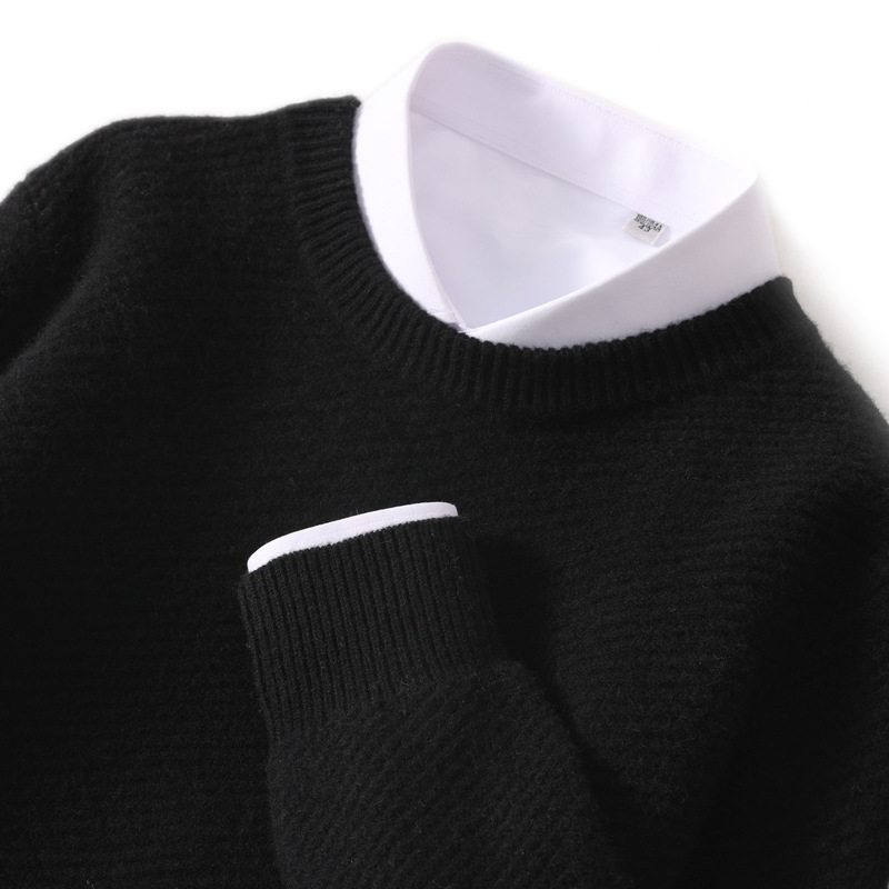 가을과 겨울 새 남자 스웨터 라운드 넥 단색 비즈니스 스웨터 느슨한 캐주얼 두꺼운 울 니트 베이스 셔츠