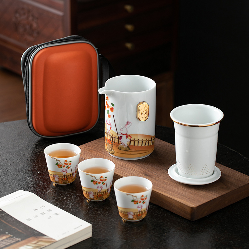 새해 토끼 해 휴대용 여행 차 세트 휴대용 간단한 야외 패키지 캠핑 익스프레스 컵 사용자 정의 로고스토어 가기