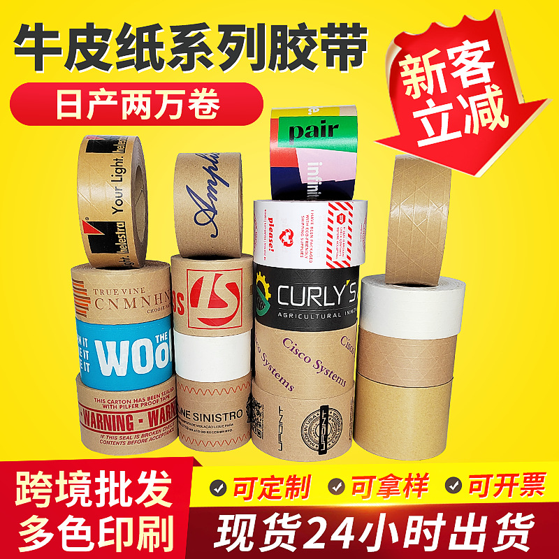 사용자 정의 습식 수 유선 물 프리 크래프트 종이 테이프 인쇄 가능한 로고 열화 습식 물 강화 크래프트 종이 테이프스토어 가기