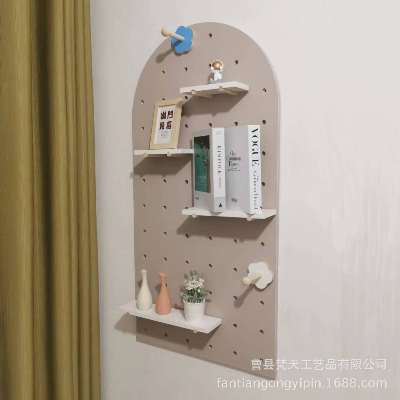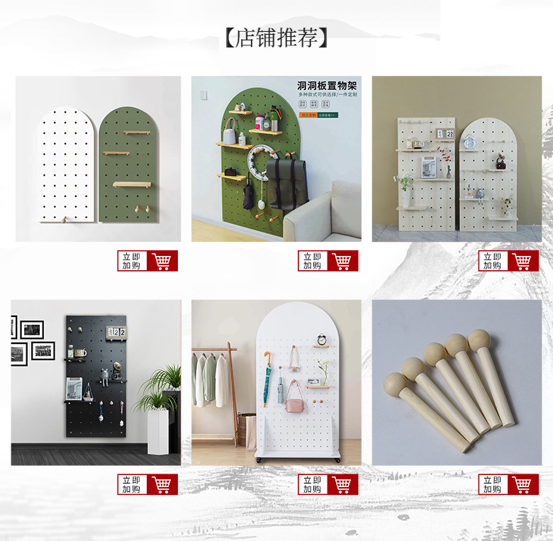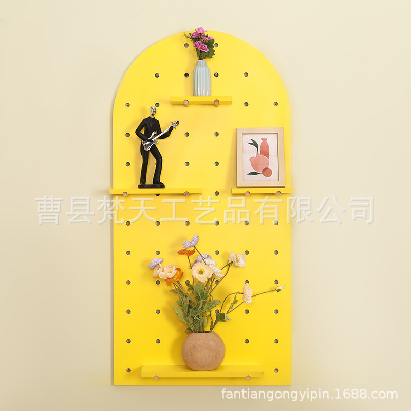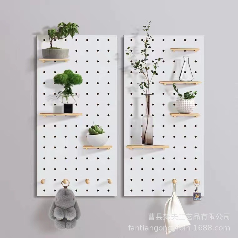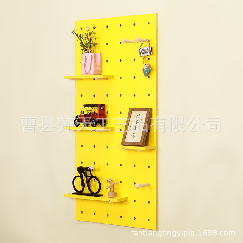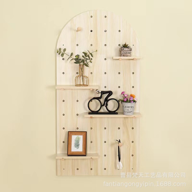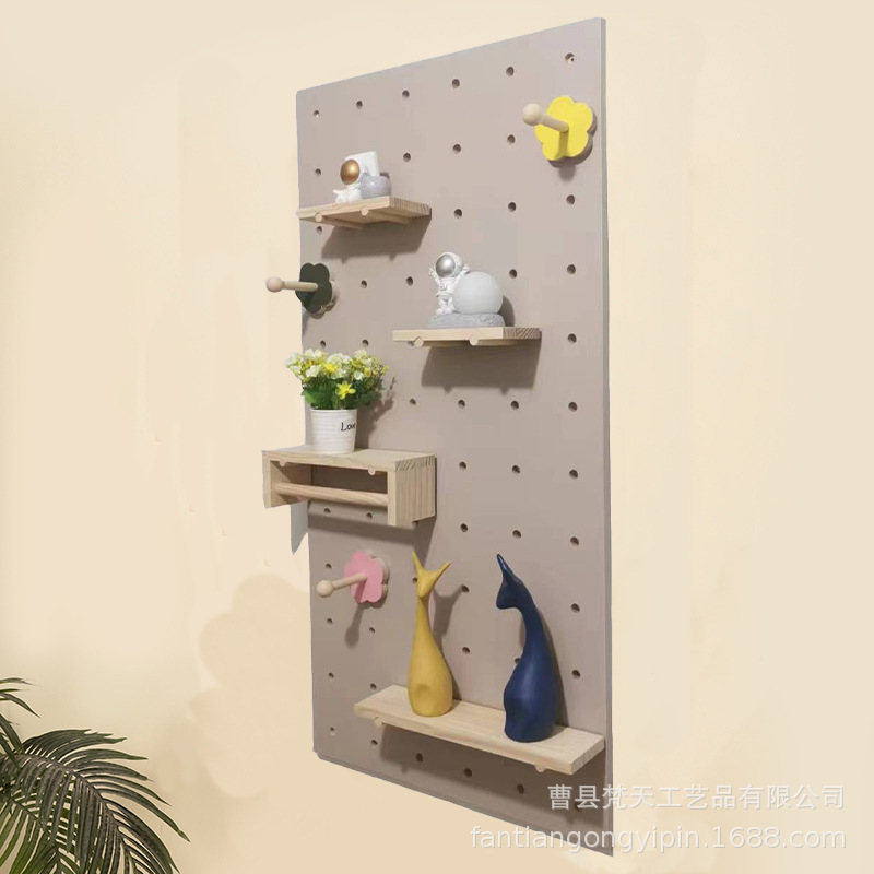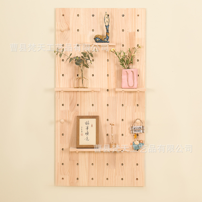 나무 구멍 보드 보관 랙 장식 선반 홈 거실 침실 복도 벽 단단한 나무 구멍 보드 보관 랙스토어 가기