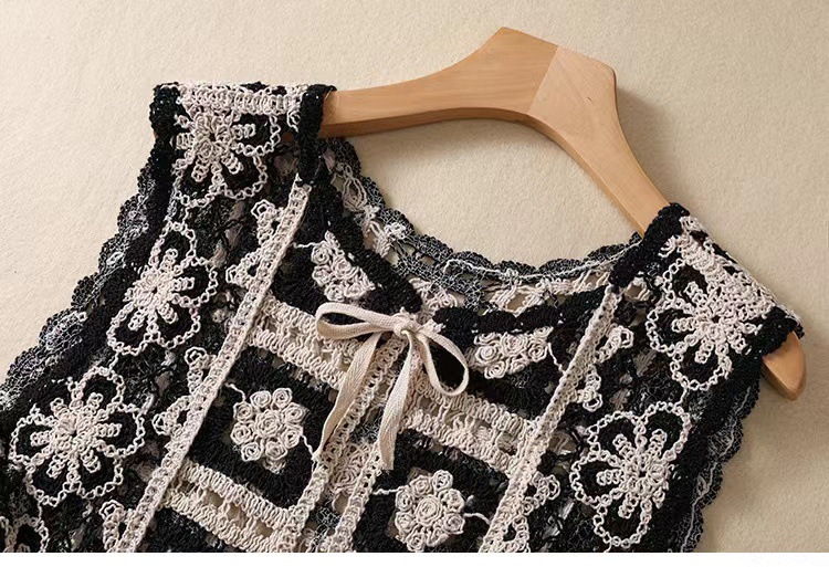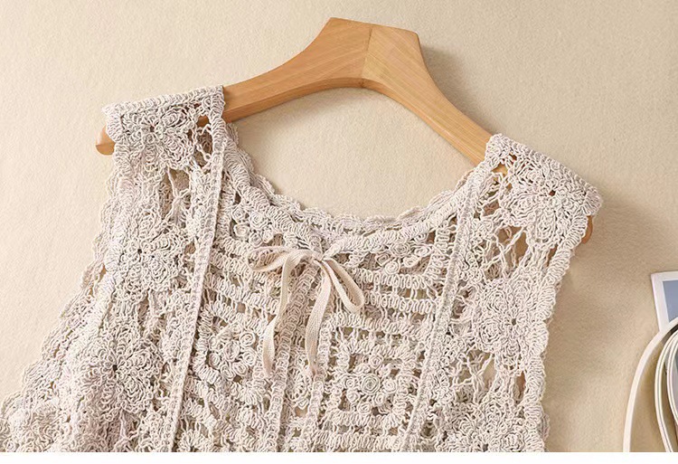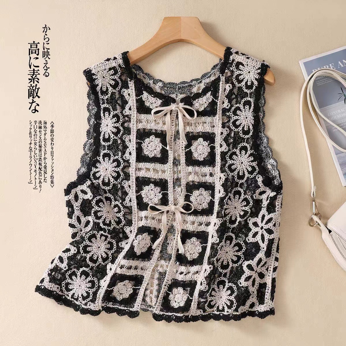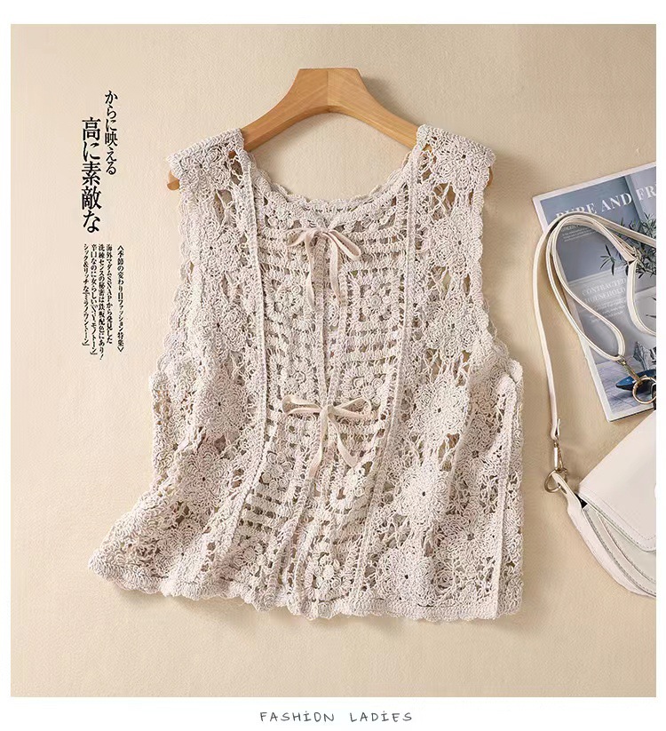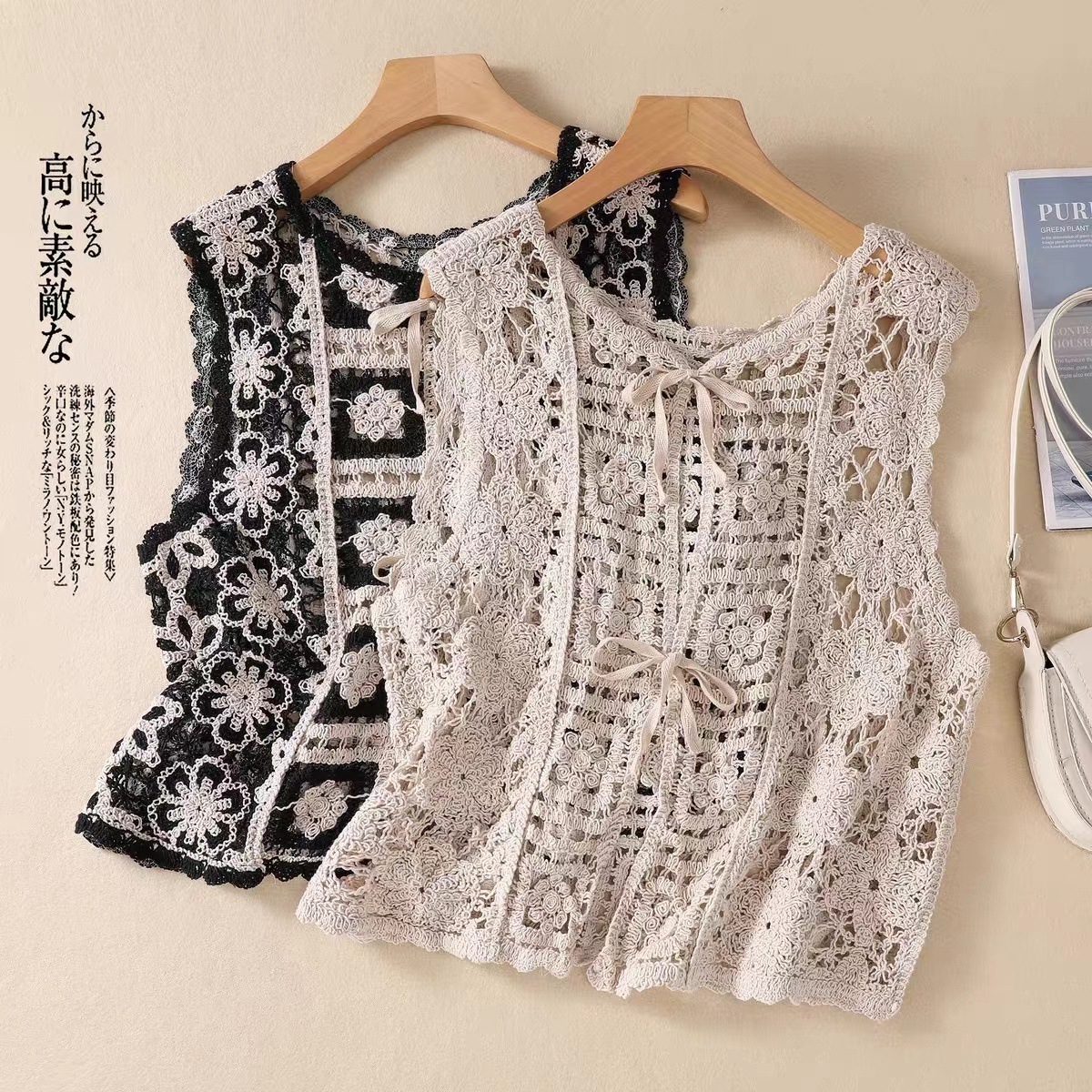 레이스 Gouhua 중공 앞뒤 착용 짧은 조끼 여성용 느슨한 민소매 모든 매치 스택 레이스 업 카디건 가을 조끼