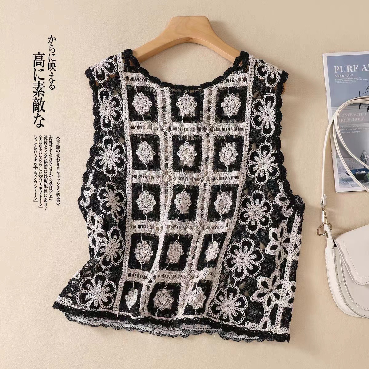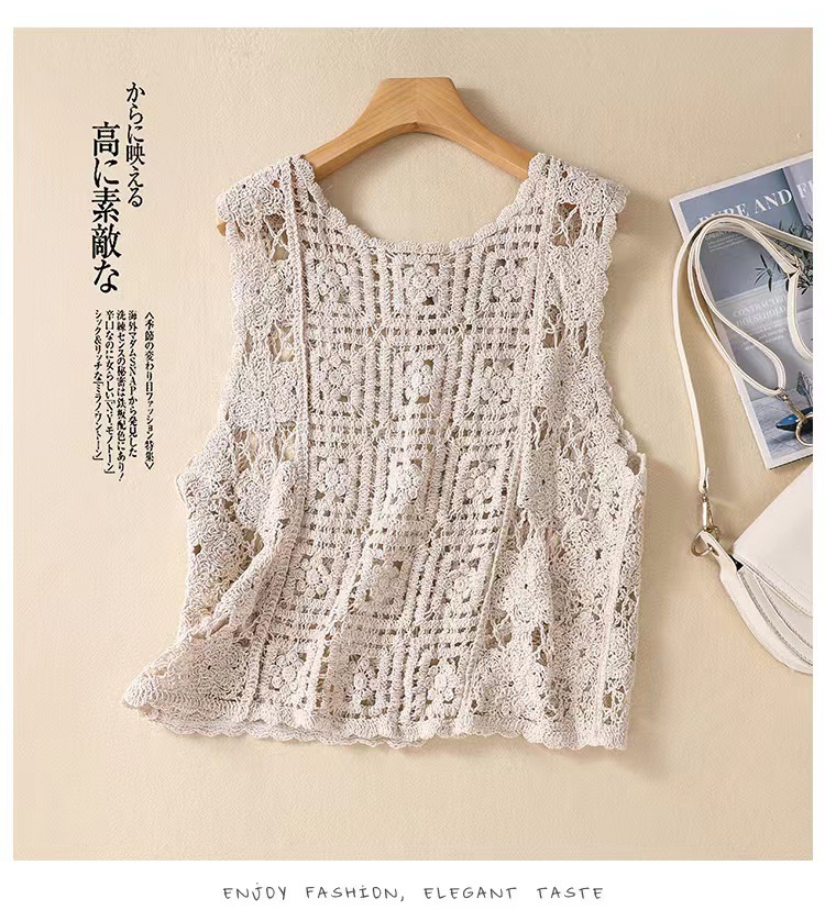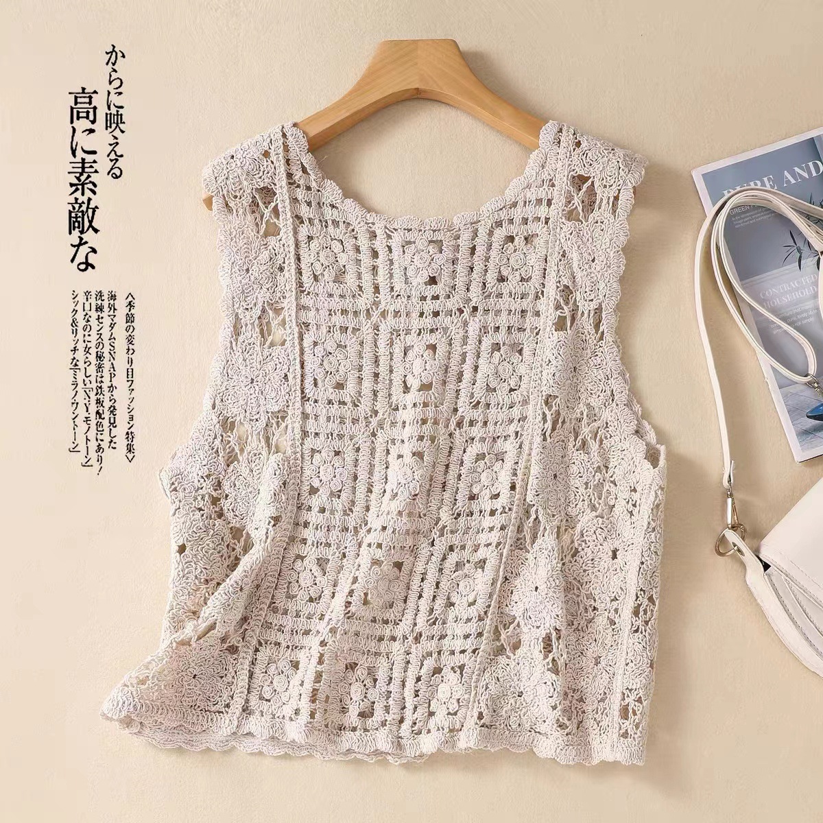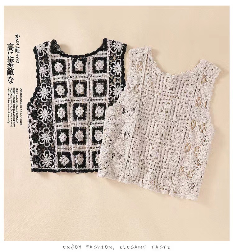 레이스 Gouhua 중공 앞뒤 착용 짧은 조끼 여성용 느슨한 민소매 모든 매치 스택 레이스 업 카디건 가을 조끼