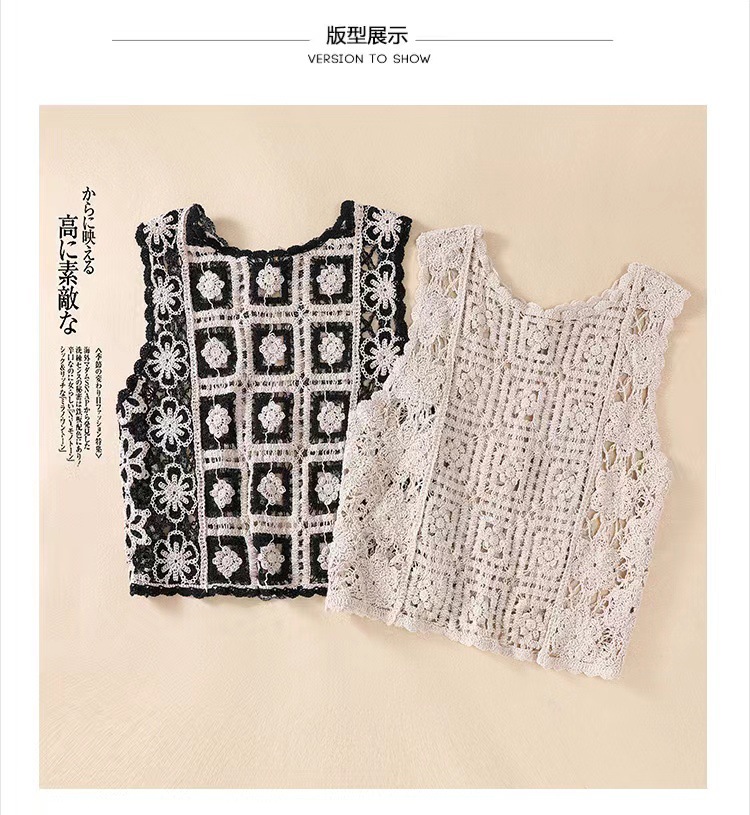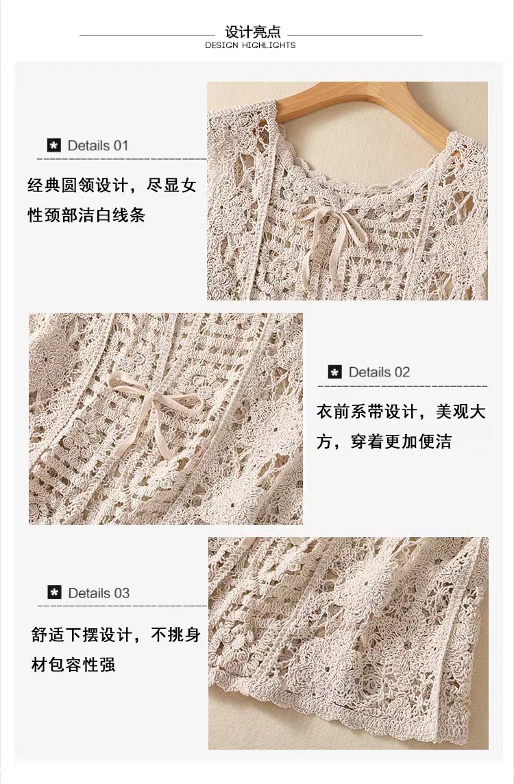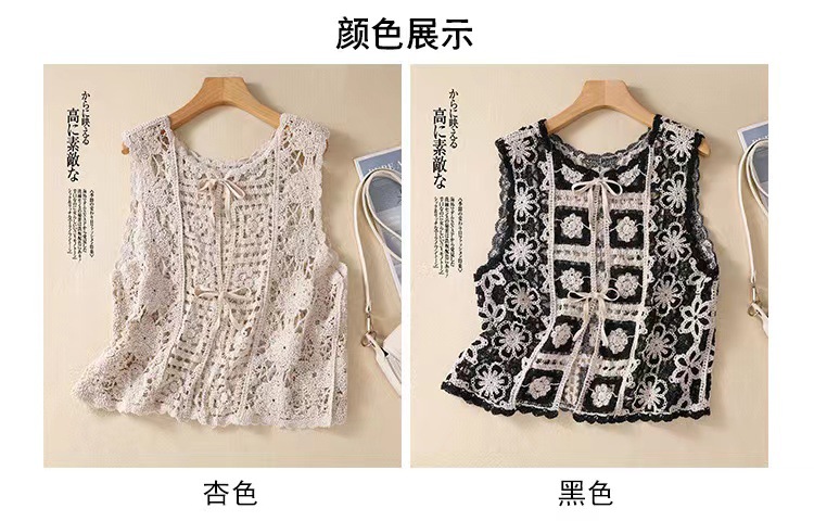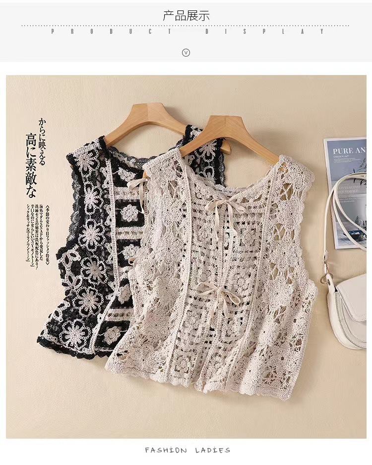 레이스 Gouhua 중공 앞뒤 착용 짧은 조끼 여성용 느슨한 민소매 모든 매치 스택 레이스 업 카디건 가을 조끼스토어 가기