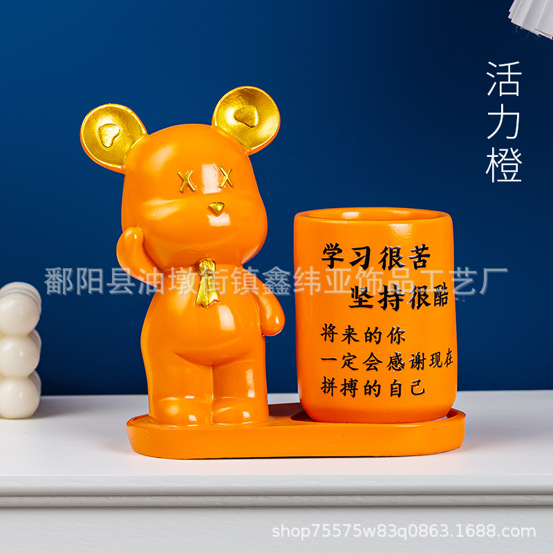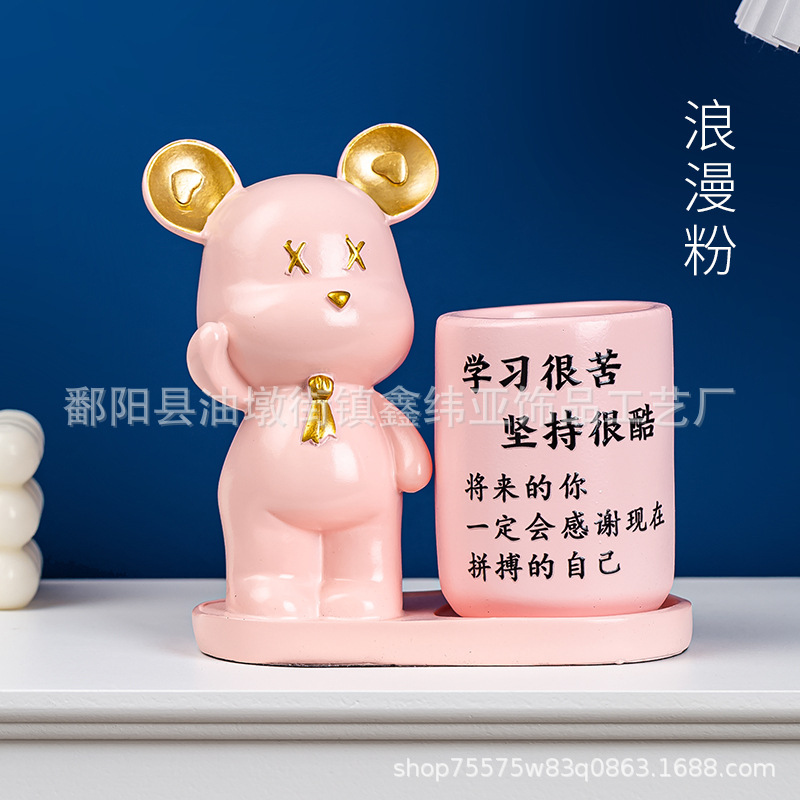 크리 에이 티브 펜 홀더 사무실 학생 데스크탑 다기능 보관함 현대 빛 럭셔리 폭력 곰 장식품 생일 선물스토어 가기